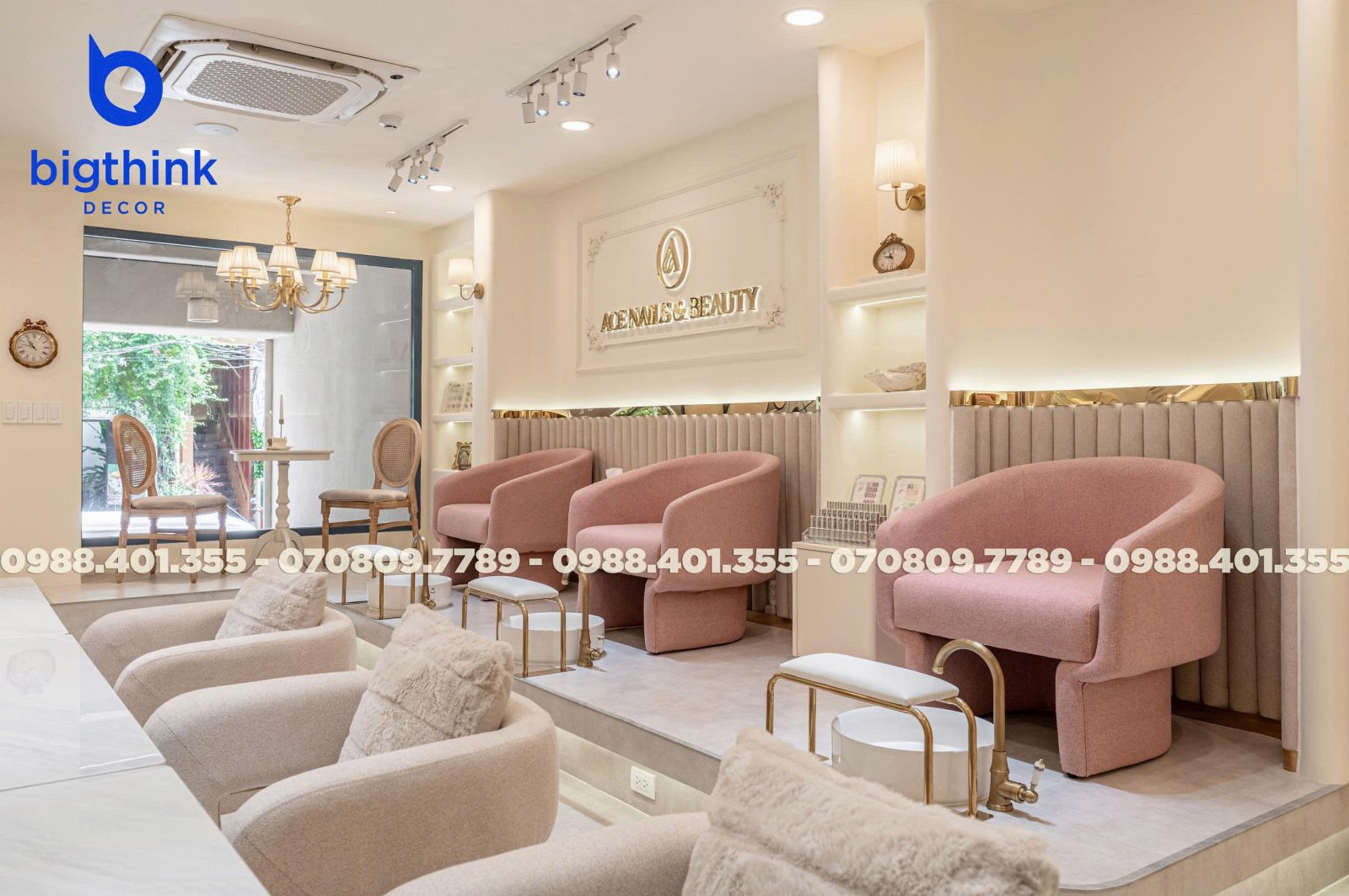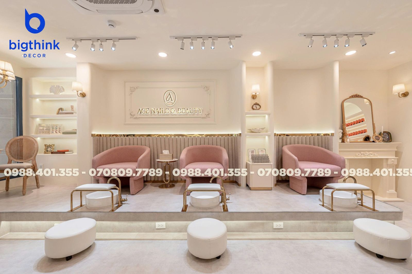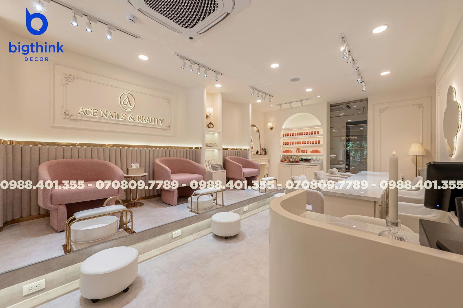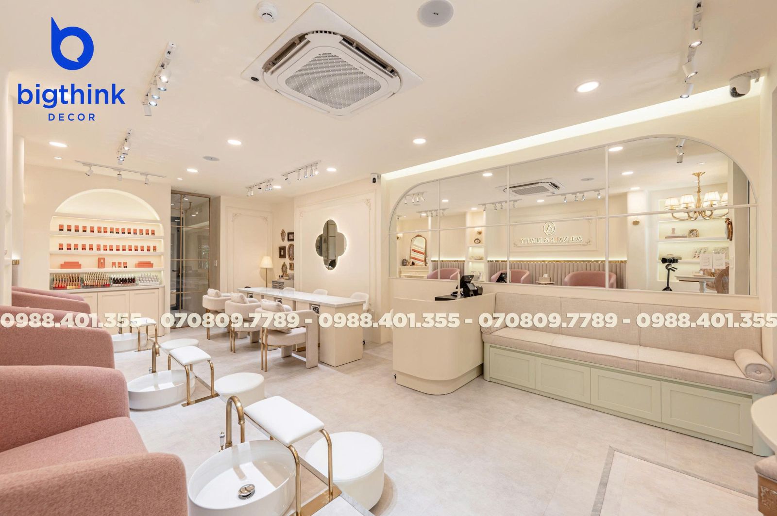 Ace Nails & Beauty một không gian hài hòa và đầy cảm hứng. Sự kết hợp giữa ánh sáng ấm, chất liệu tinh tế và bố cục hợp lý tạo nên tiệm nail sang trọng nhưng vẫn giữ được sự mềm mại và cảm giác thư thái tự nhiên. Mỗi góc nhỏ đều được thi công với sự tỉ mỉ, để khách hàng cảm nhận trọn vẹn sự thư thái và tinh thần “làm đẹp là tận hưởng”.