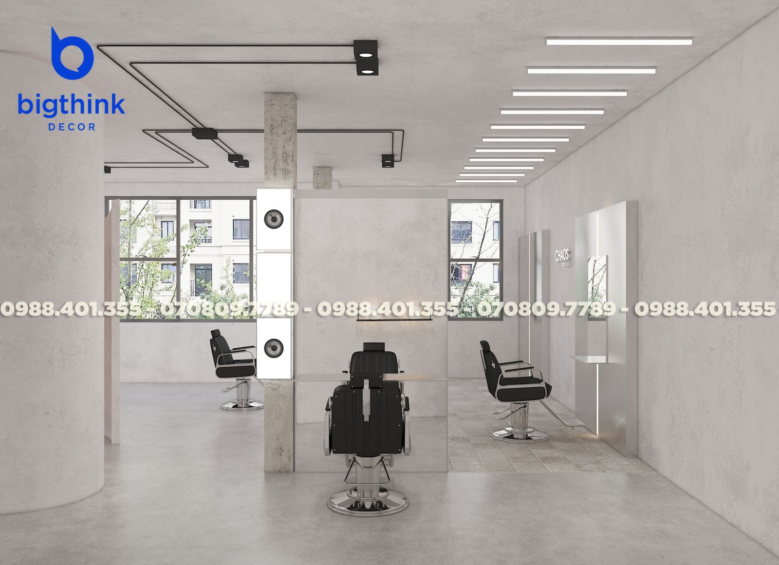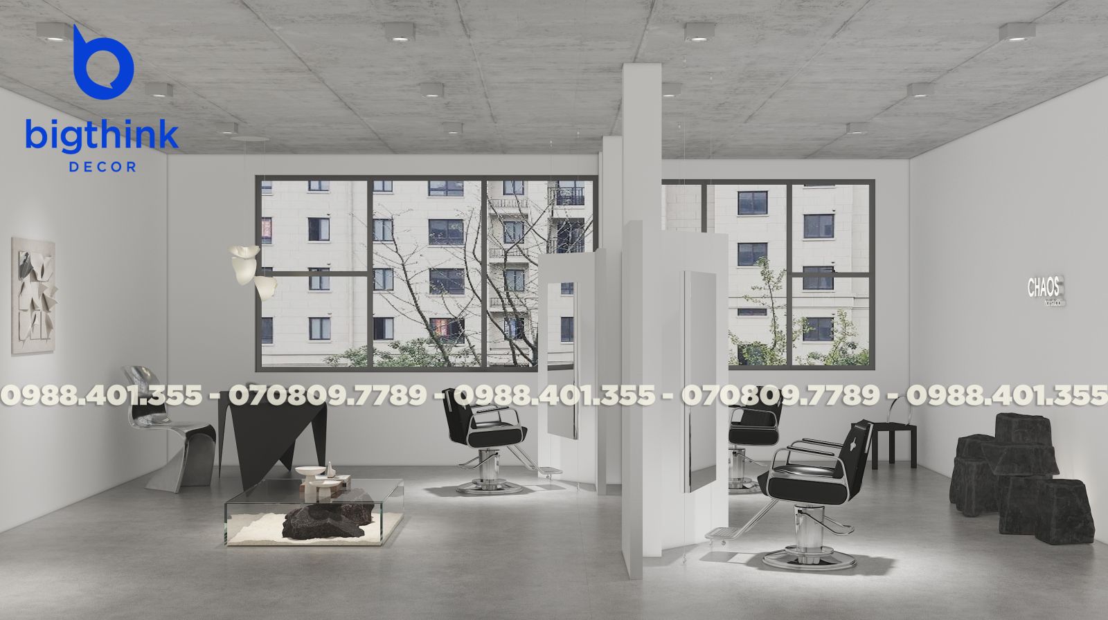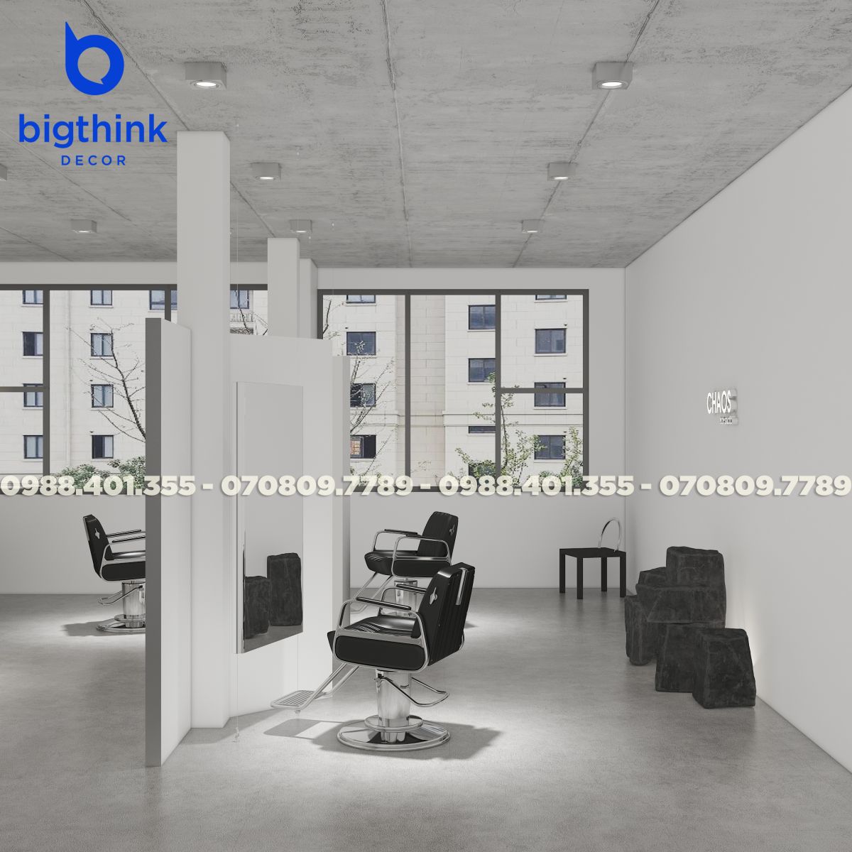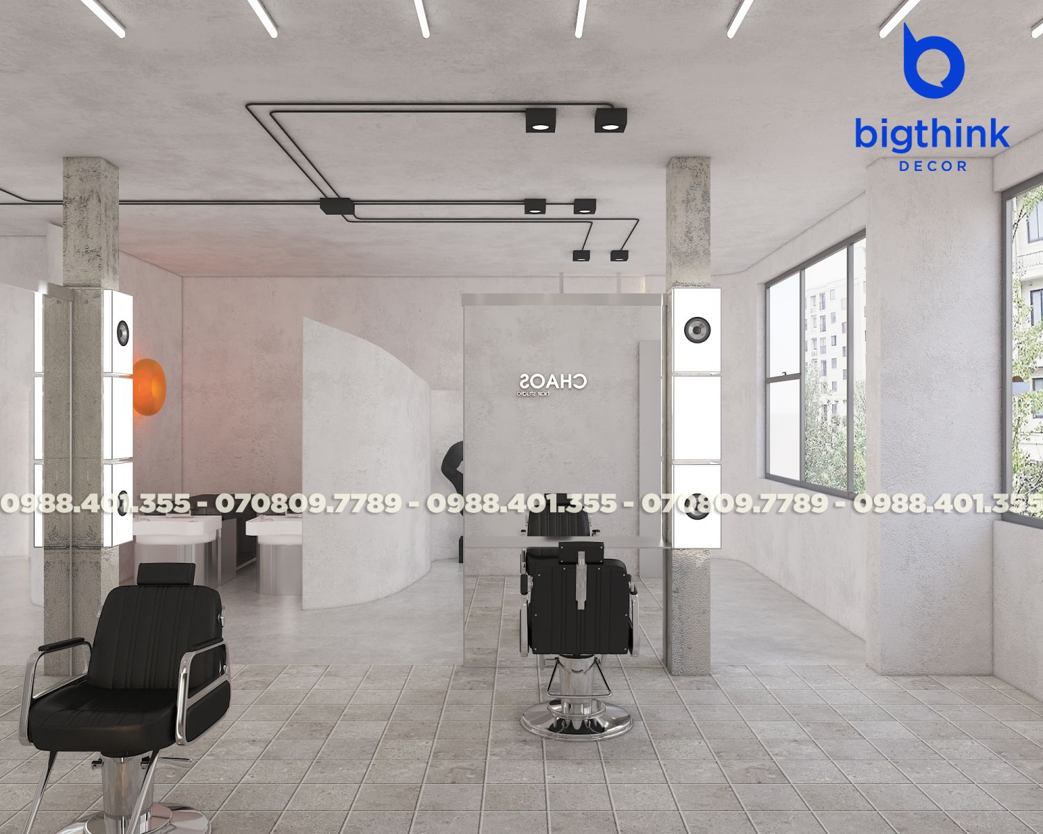 CHAOS chào đón bạn bằng một không gian nhẹ nhàng và tinh tế. Thay vì những sắc màu rực rỡ, Bigthink Decor chọn tông màu dịu mắt để khách hàng có thể thả mình thư giãn tuyệt đối trong suốt quá trình chăm sóc tóc. Tại đây, mỗi thay đổi nhỏ ở diện mạo đều đi cùng một cảm giác mới mẻ và đầy năng lượng cho tâm hồn.