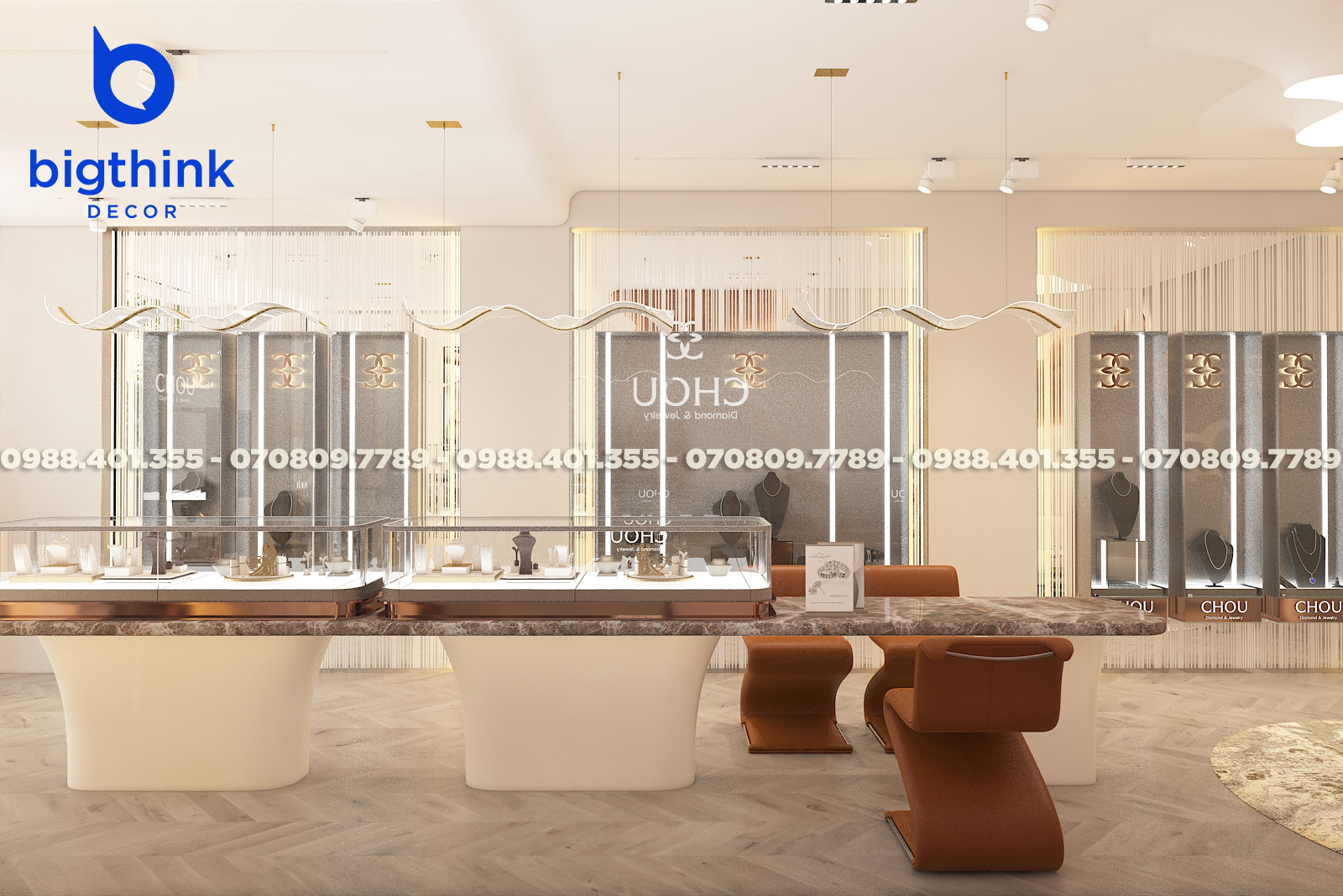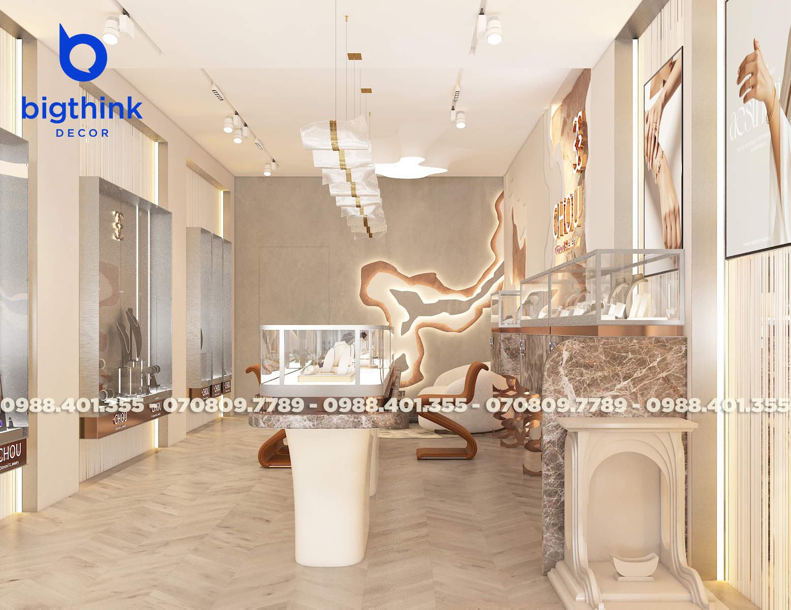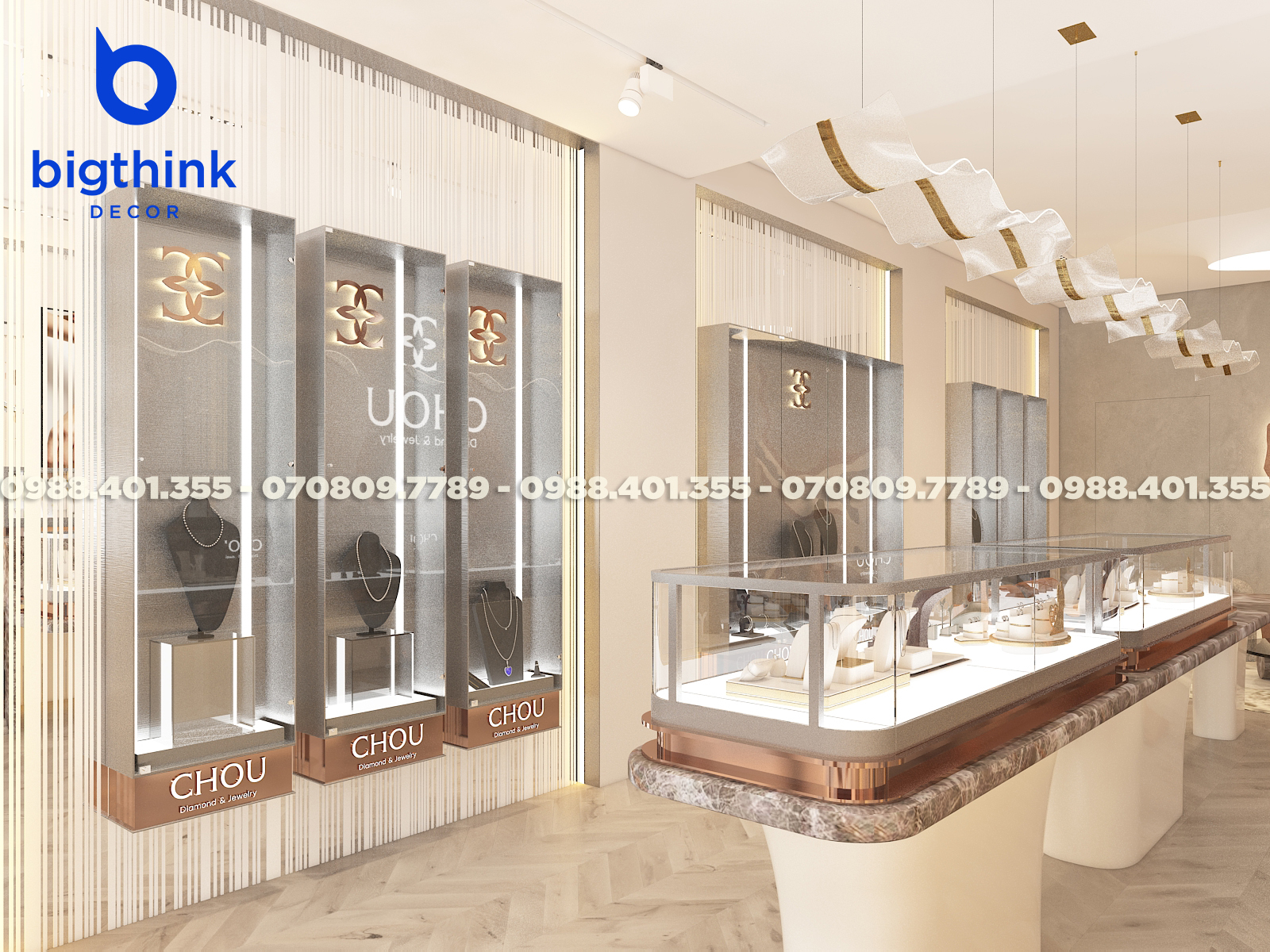 Với đội ngũ Bigthink Decor, sở hữu cửa hàng trang sức ấn tượng không còn là mơ ước nữa. Chúng tôi giúp bạn hiện thực hóa một cửa hàng đẳng cấp, từ thiết kế đến trải nghiệm khách hàng.