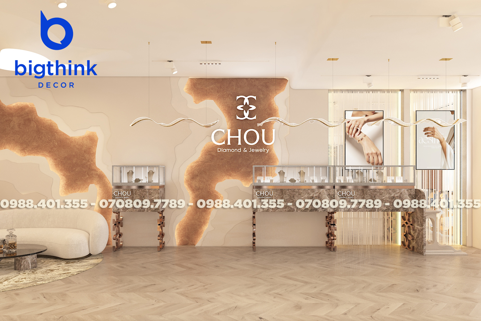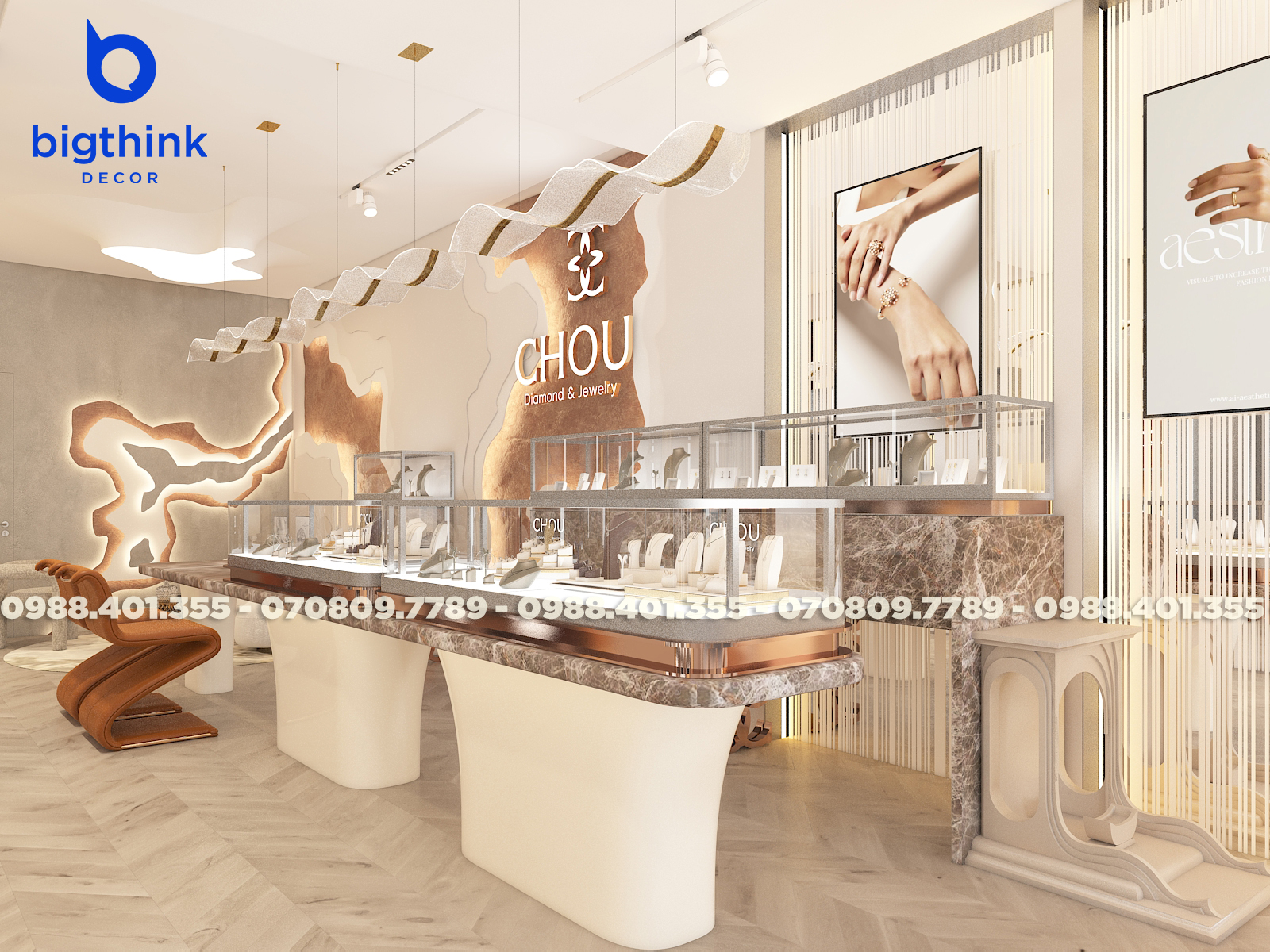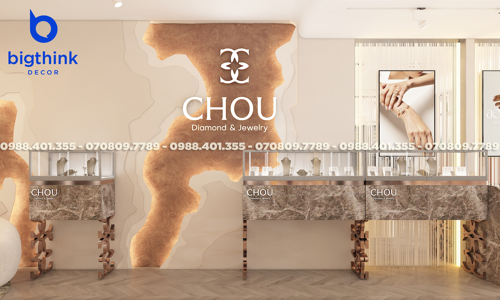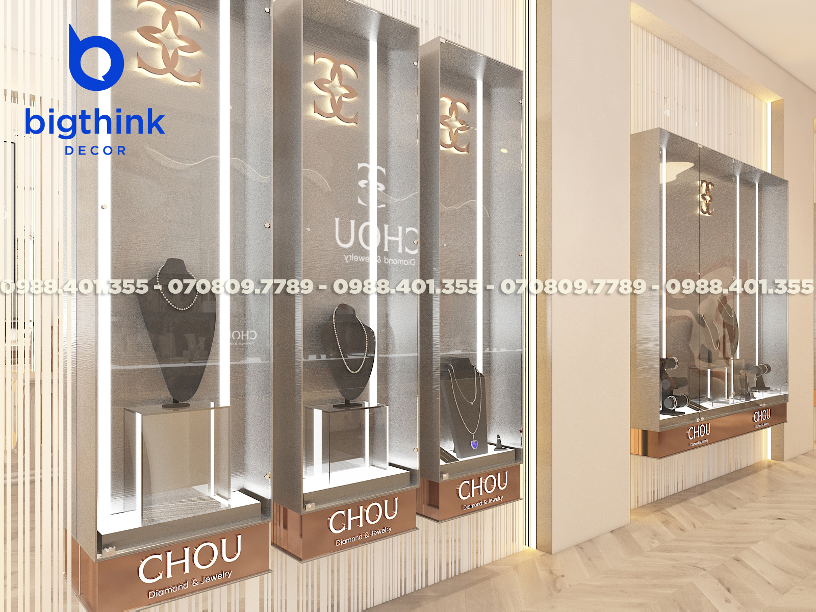 Với đội ngũ Bigthink Decor, sở hữu cửa hàng trang sức ấn tượng không còn là mơ ước nữa. Chúng tôi giúp bạn hiện thực hóa một cửa hàng đẳng cấp, từ thiết kế đến trải nghiệm khách hàng.