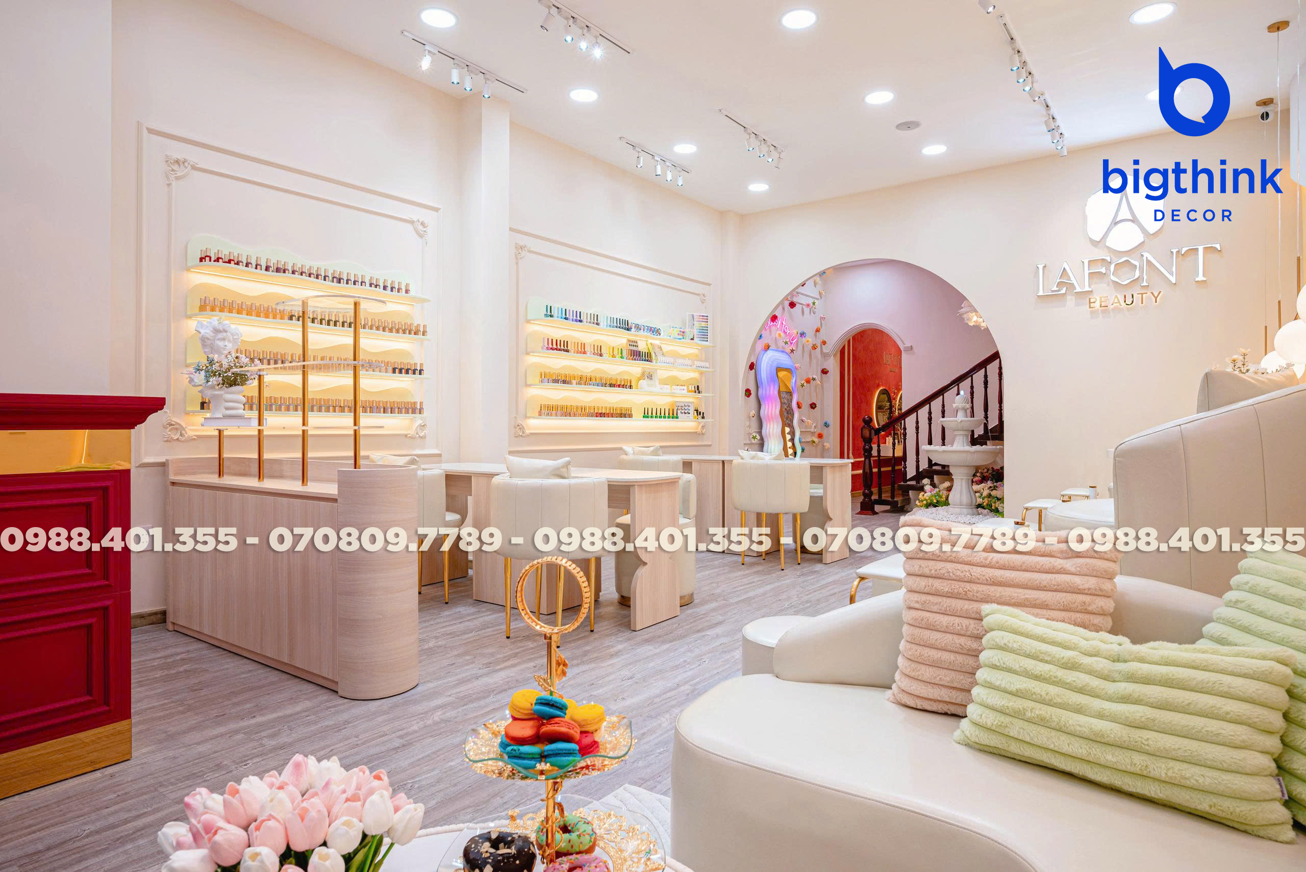 Lafont Beauty được hoàn thiện với tinh thần tối giản hiện đại, tập trung vào cảm giác thư giãn ngay khi khách bước vào. Không gian sử dụng gam màu nhẹ, ánh sáng ấm và bố cục gọn gàng để tạo sự thoải mái mà không gây rối mắt.