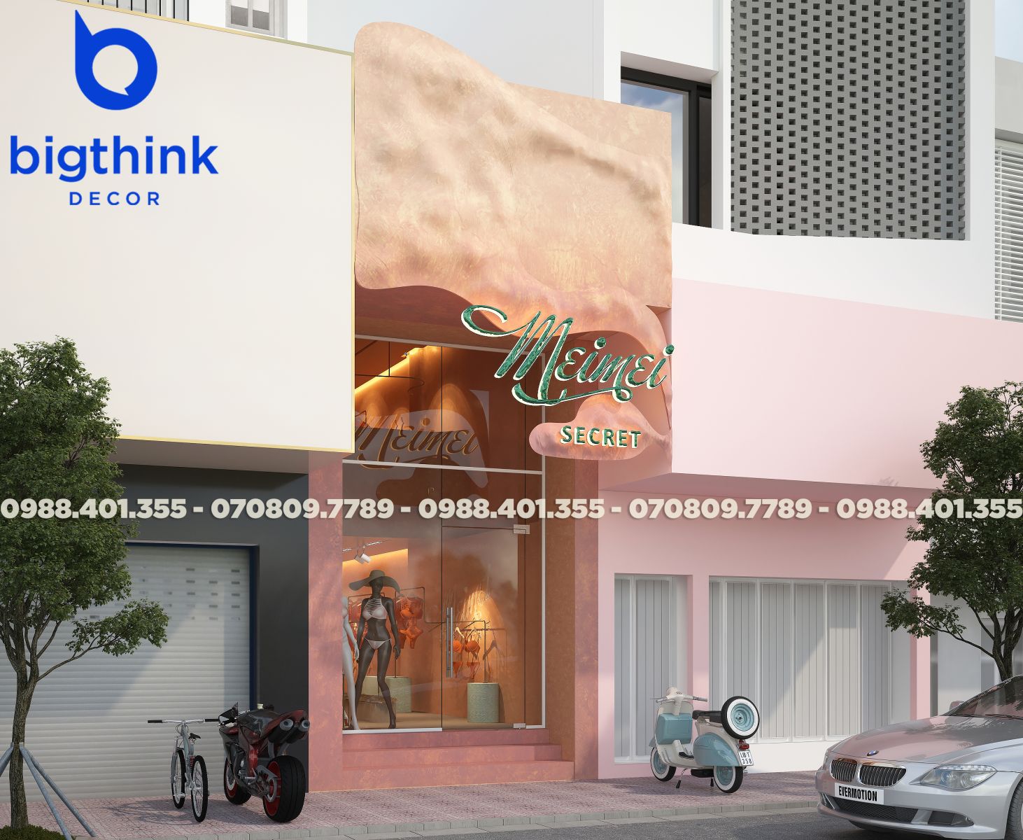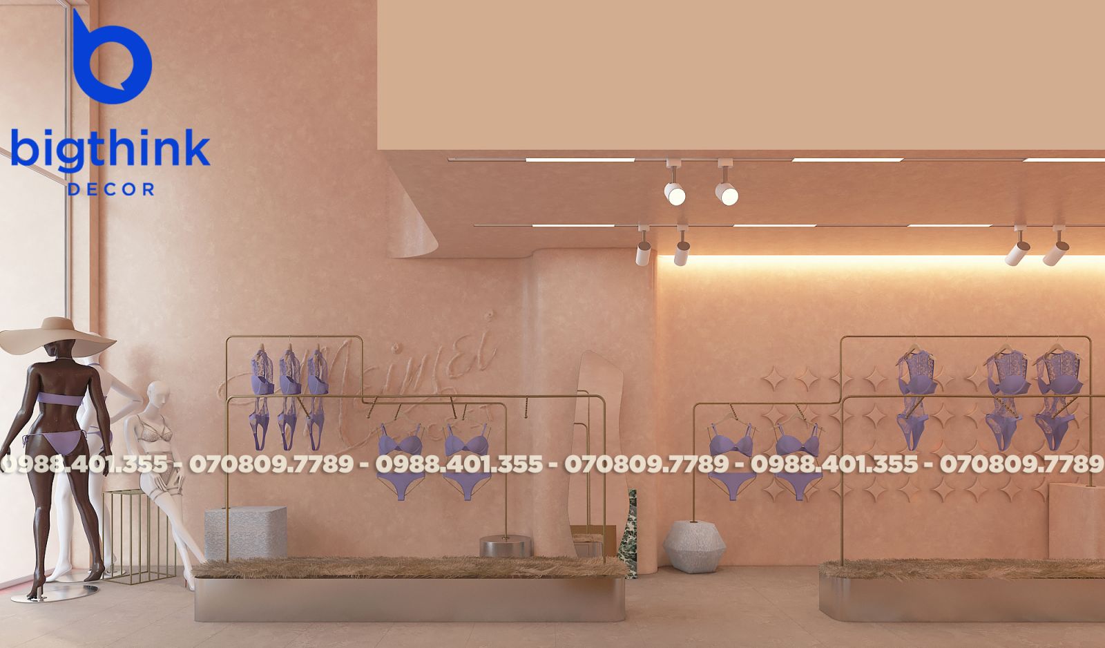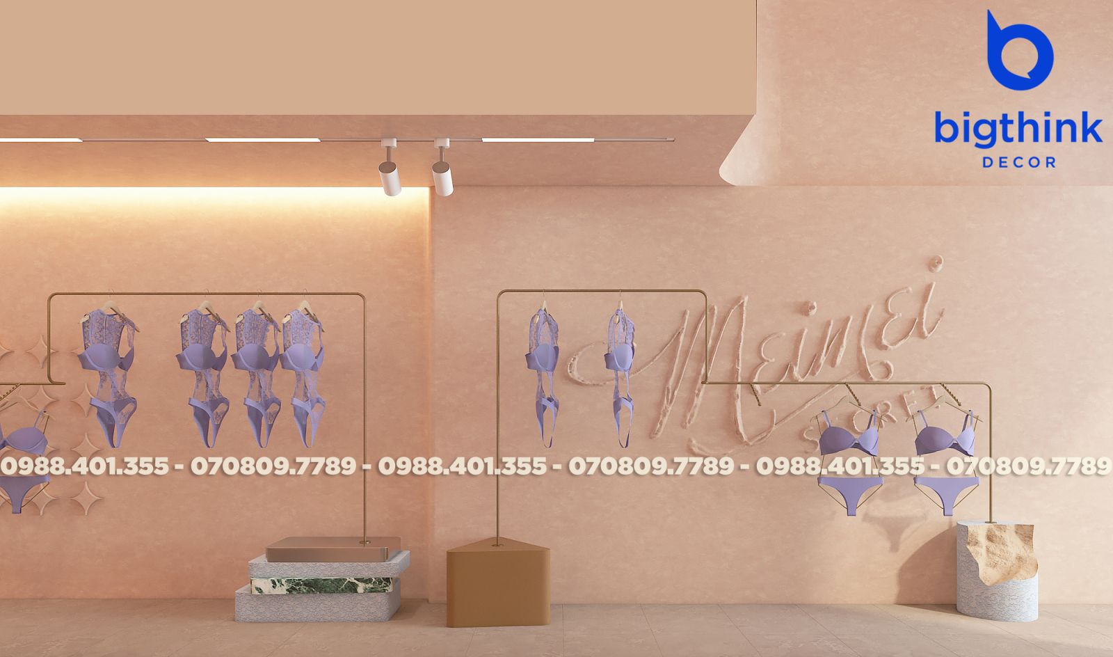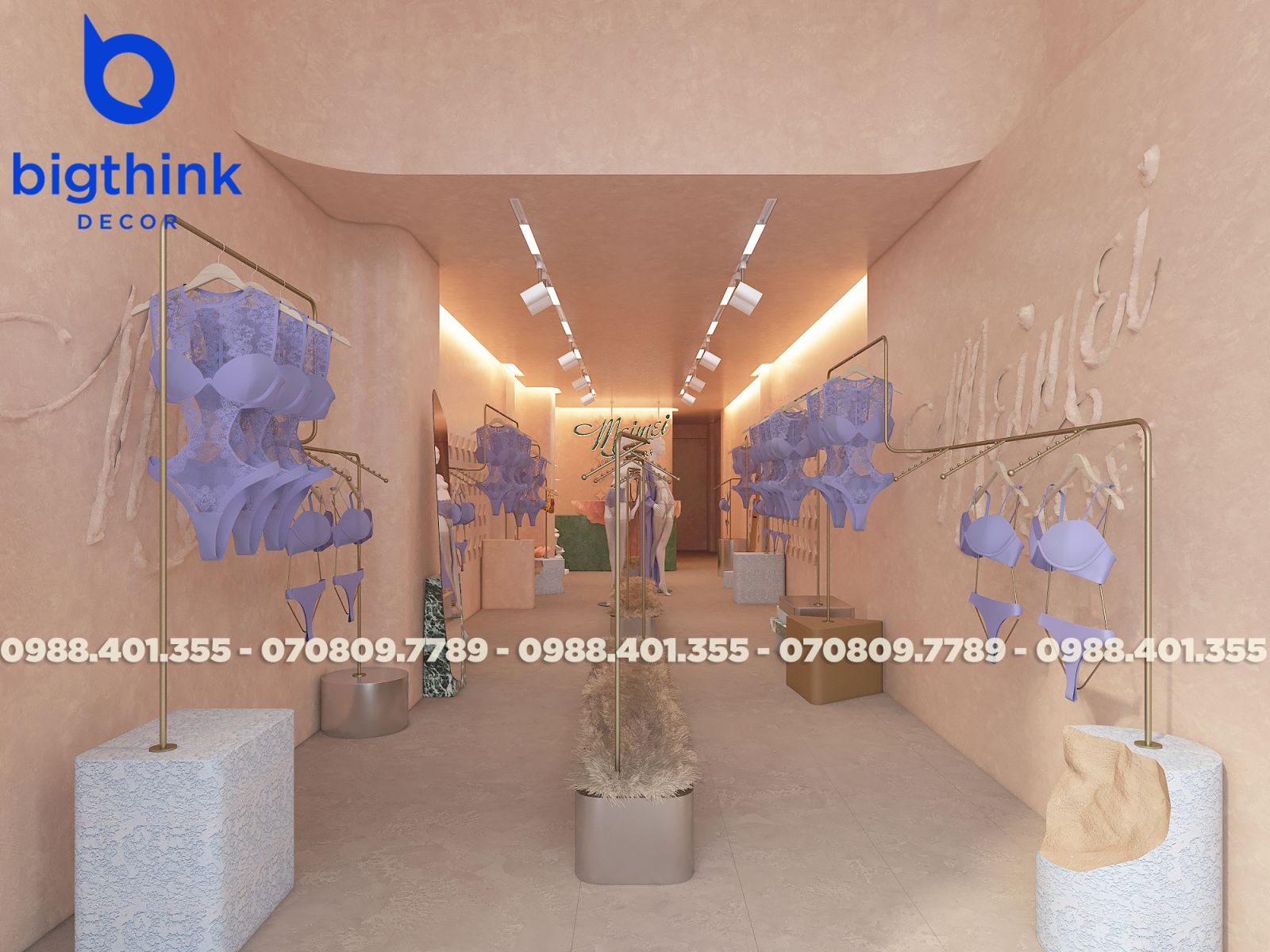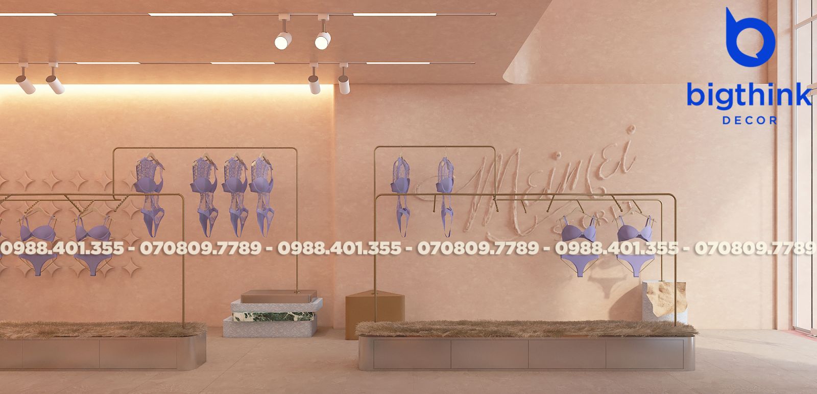 Mei Mei Secret được Bigthink Decor phát triển với định hướng tinh tế và chỉnh chu, sử dụng bảng màu nude ấm kết hợp ánh sáng dịu để tạo cảm giác riêng tư và mềm mại. Các đường cong trong không gian được xử lý tiết chế, giúp tổng thể nhẹ nhàng nhưng vẫn có chiều sâu.