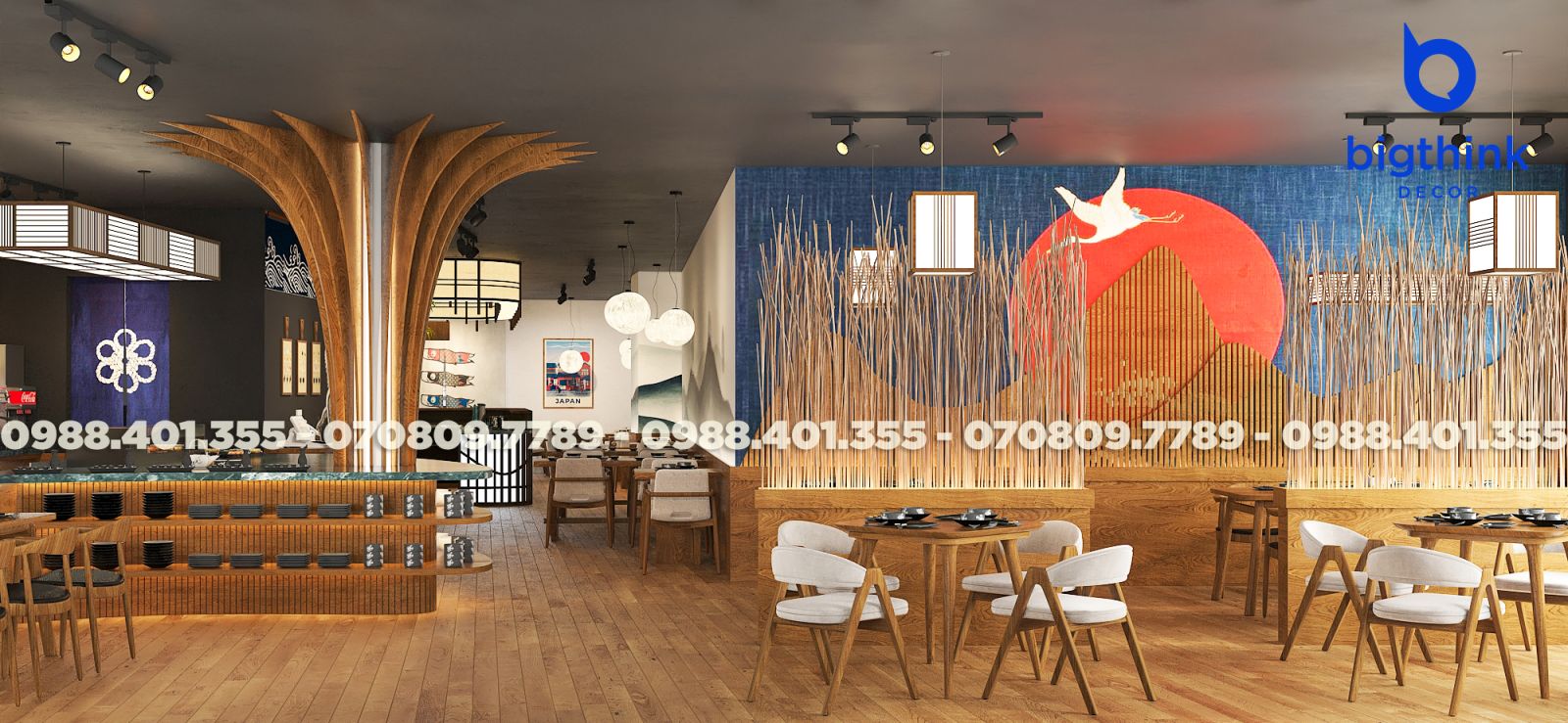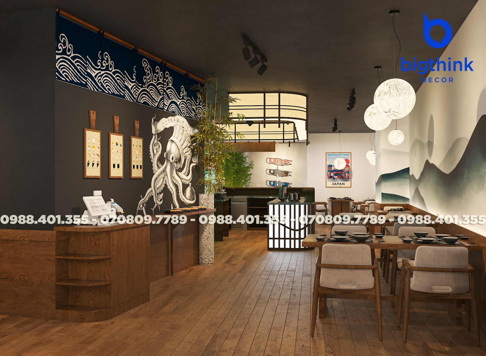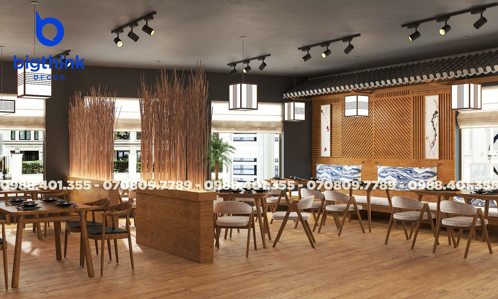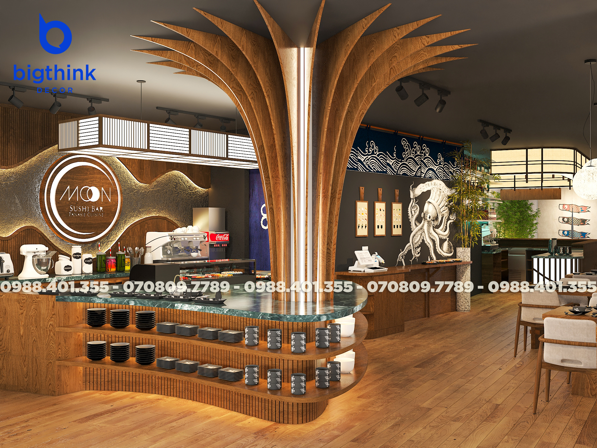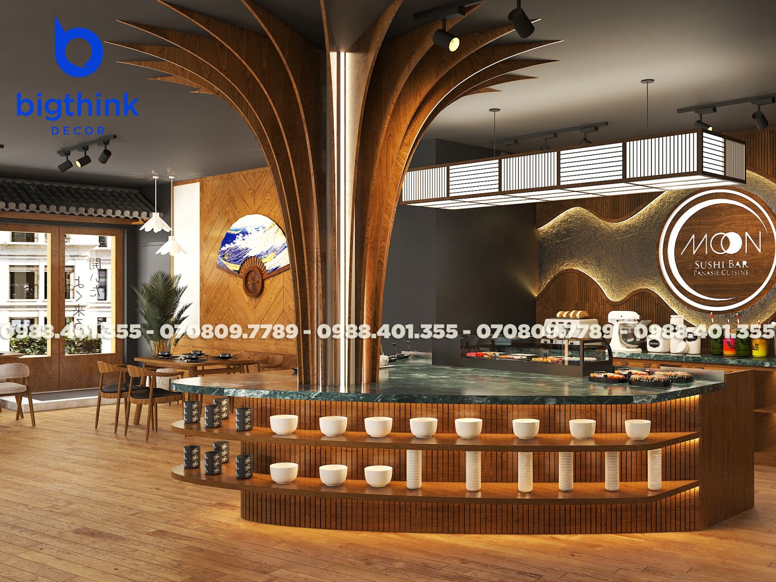 Moon Sushi Bar được lấy cảm hứng từ hình ảnh ánh trăng tĩnh lặng và những đường nét kiến trúc Nhật Bản đặc trưng, Bigthink Decor áp dụng triết lý "vừa đủ" để tạo nên một không gian sang và đẳng cấp nơi tâm hồn mà khách hàng tìm thấy sự tĩnh lặng và thư thái tuyệt đối.