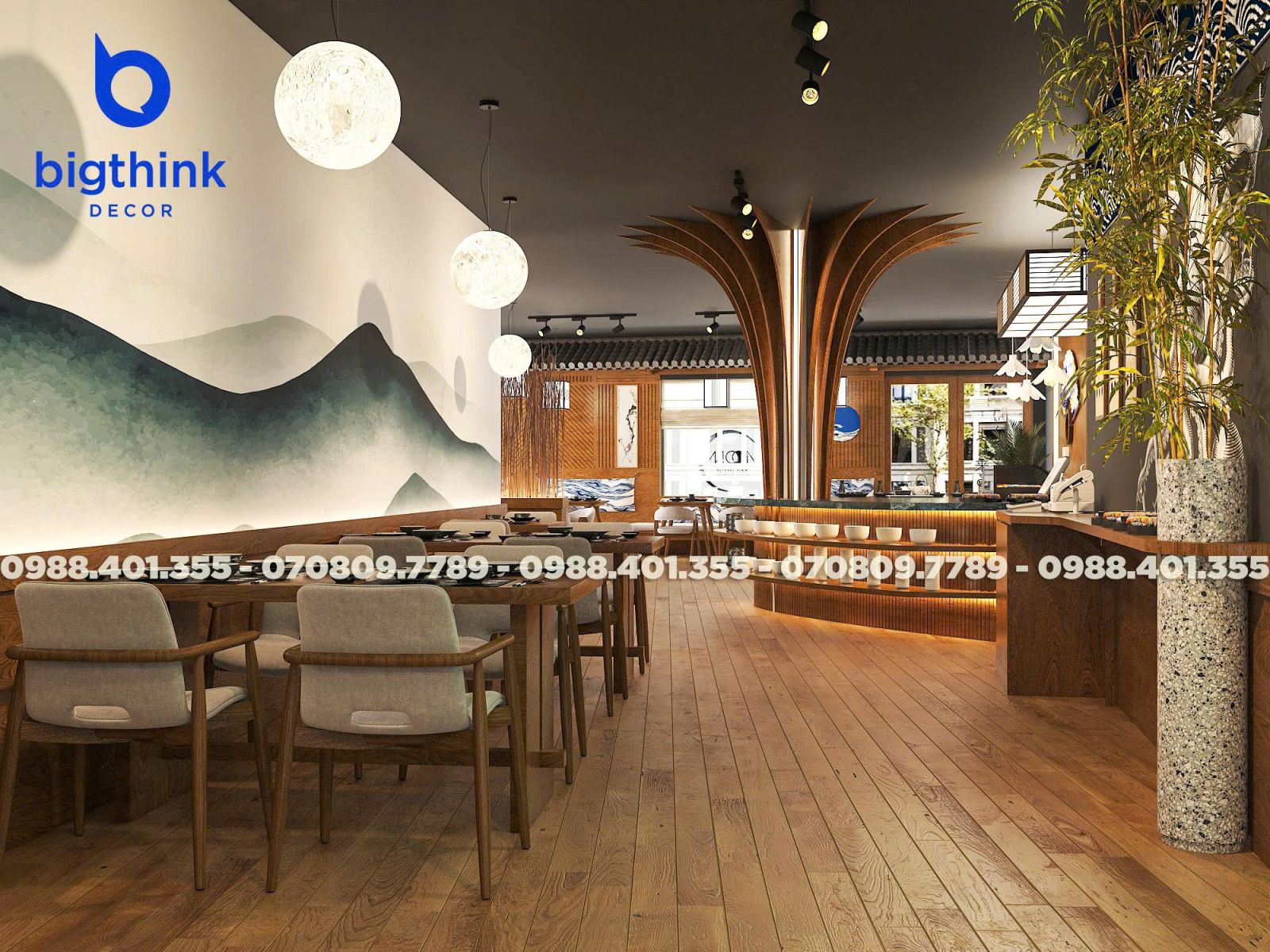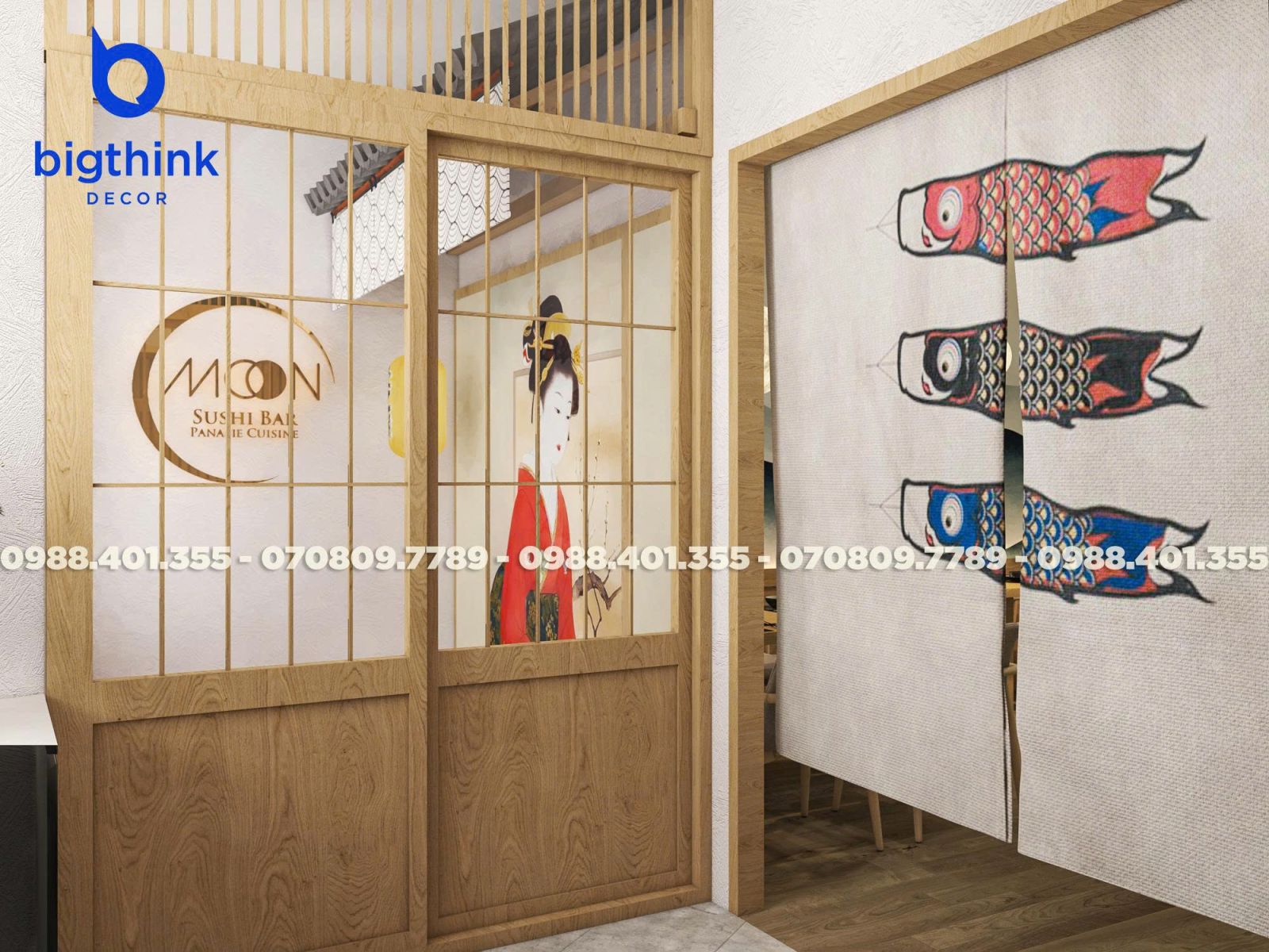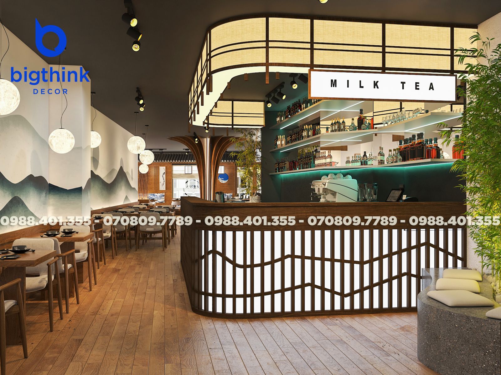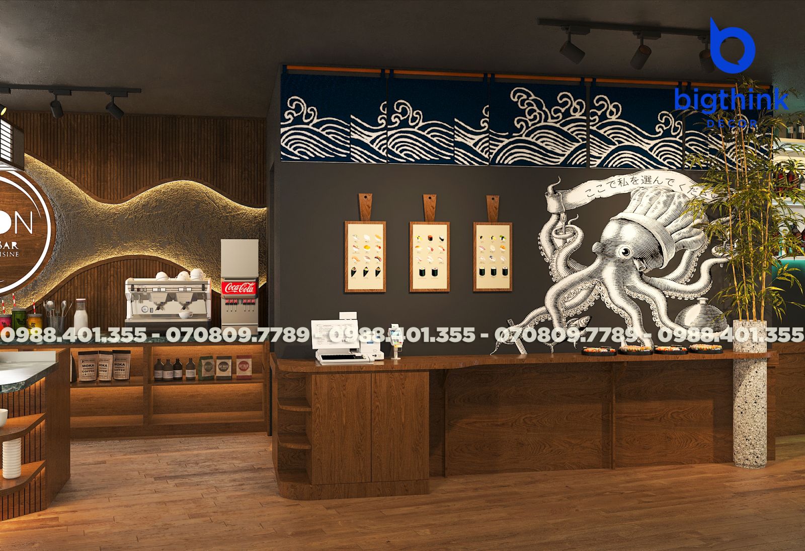 Moon Sushi Bar được lấy cảm hứng từ hình ảnh ánh trăng tĩnh lặng và những đường nét kiến trúc Nhật Bản đặc trưng, Bigthink Decor áp dụng triết lý "vừa đủ" để tạo nên một không gian sang và đẳng cấp nơi tâm hồn mà khách hàng tìm thấy sự tĩnh lặng và thư thái tuyệt đối.