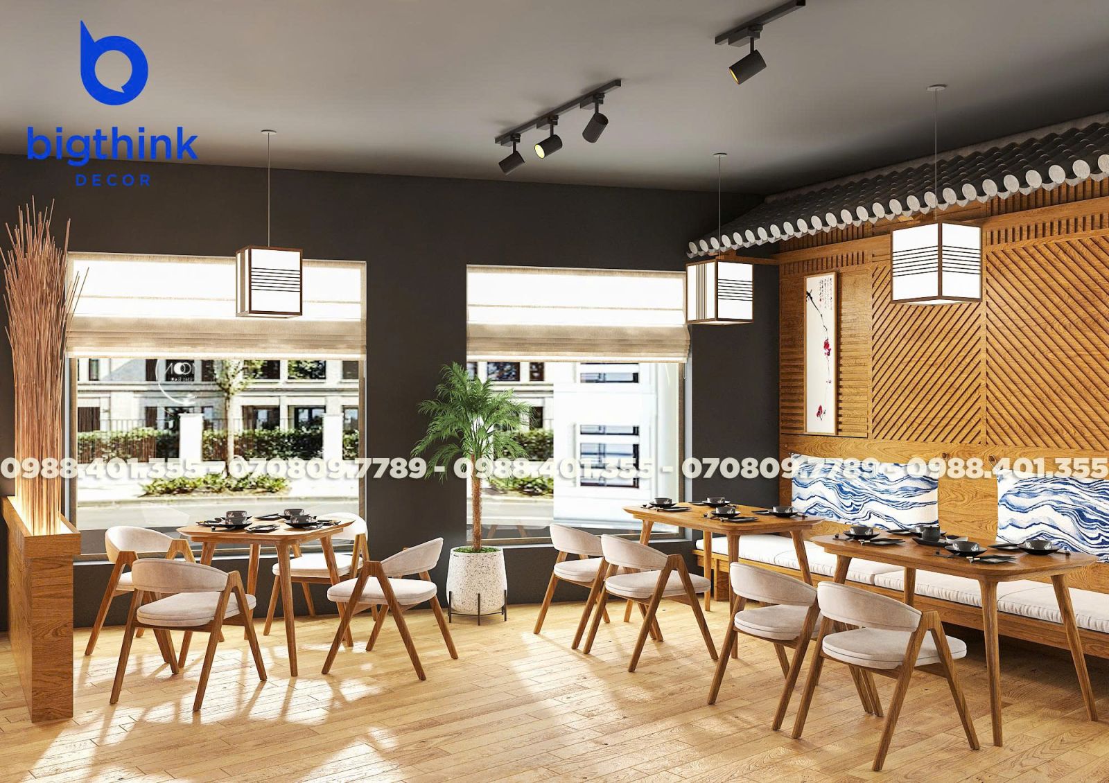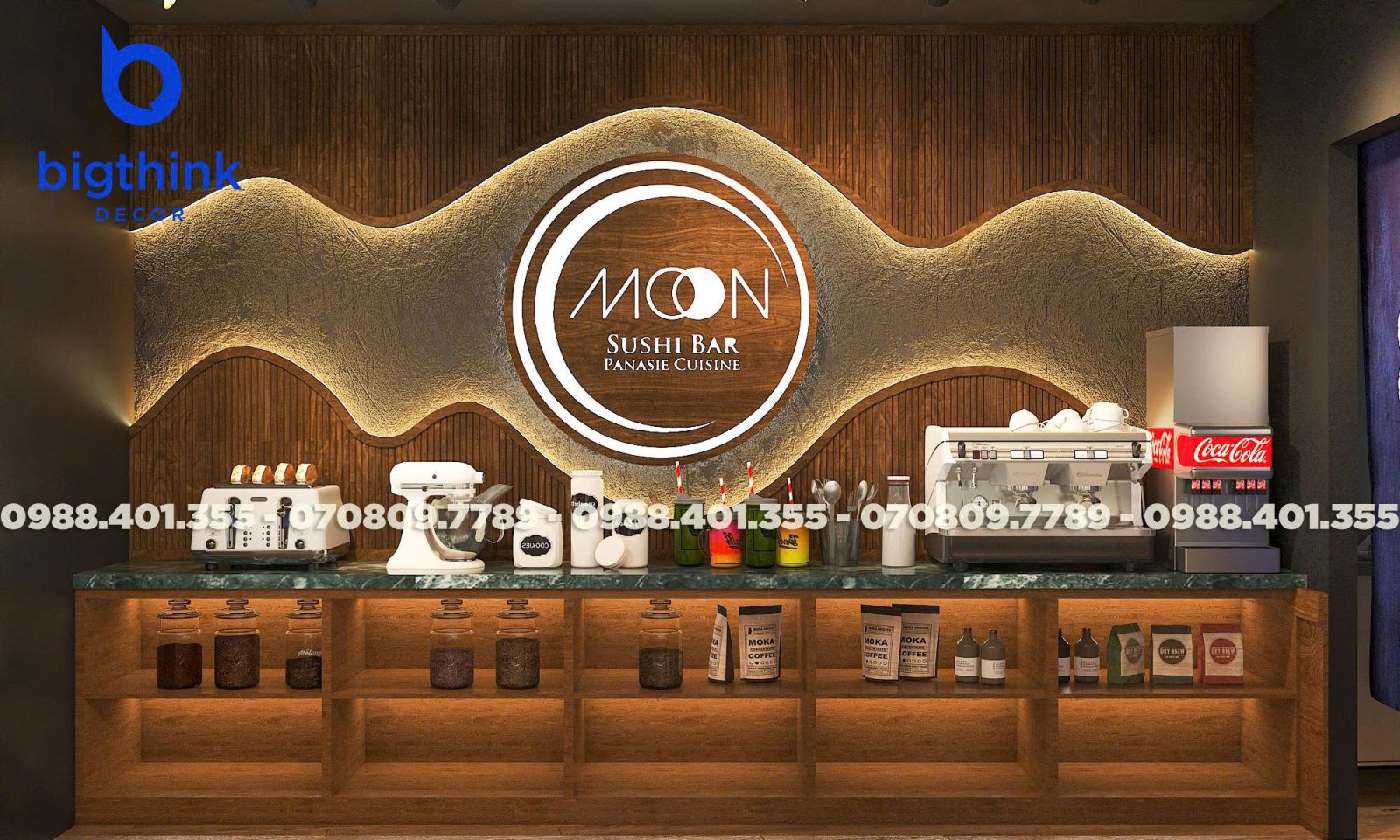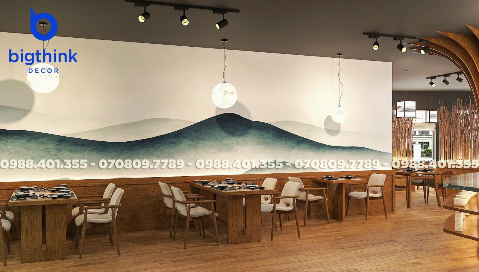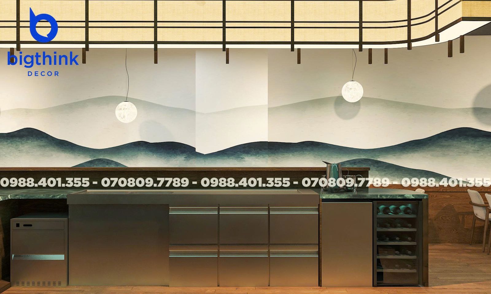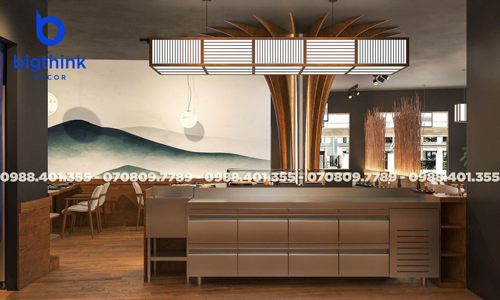 Moon Sushi Bar được lấy cảm hứng từ hình ảnh ánh trăng tĩnh lặng và những đường nét kiến trúc Nhật Bản đặc trưng, Bigthink Decor áp dụng triết lý "vừa đủ" để tạo nên một không gian sang và đẳng cấp nơi tâm hồn mà khách hàng tìm thấy sự tĩnh lặng và thư thái tuyệt đối.