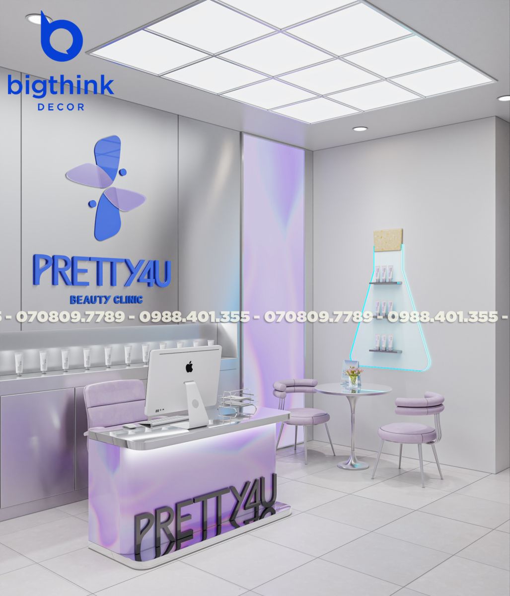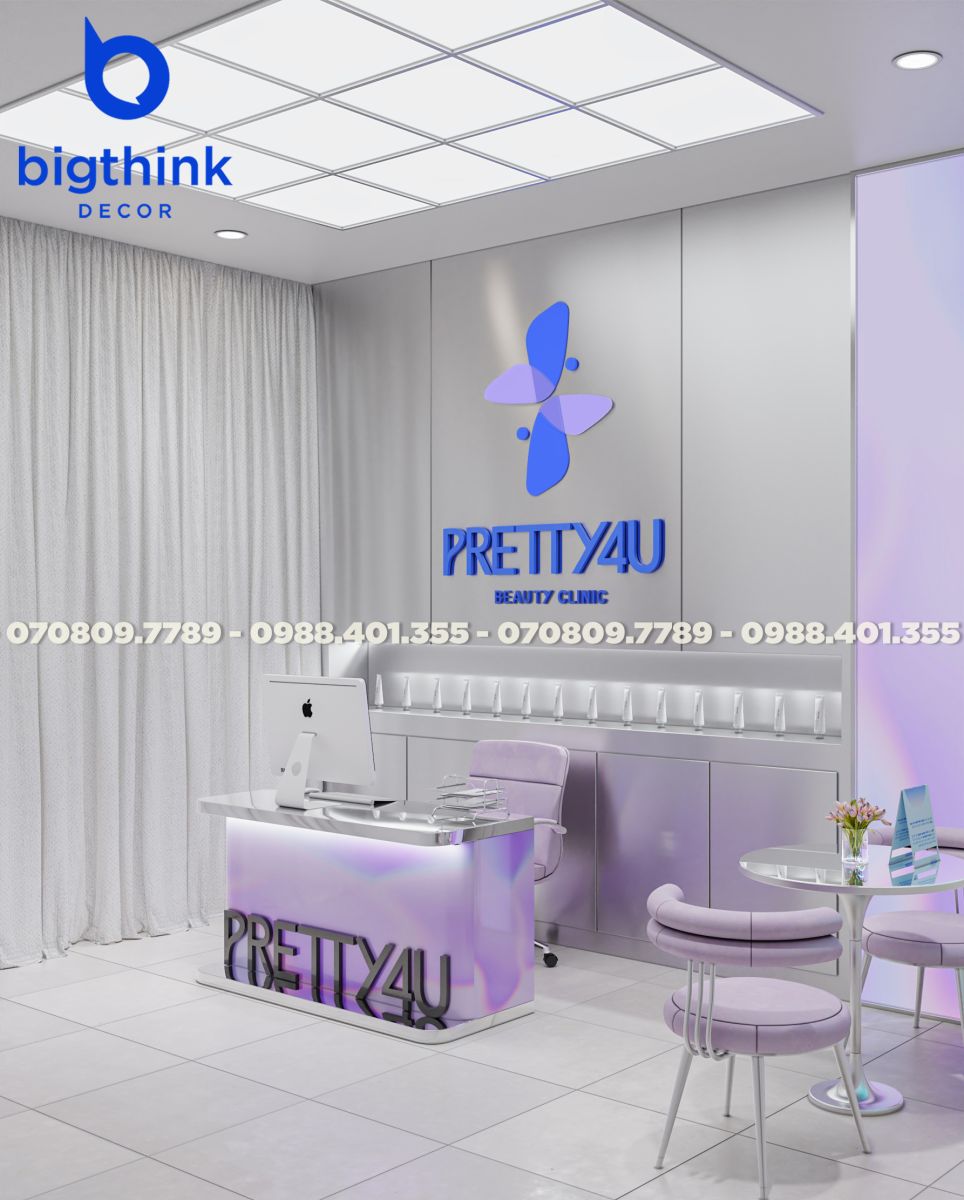 Pretty4U mang lại cảm giác thanh lịch và tinh tế ngay từ bước chân đầu tiên. Với tông màu trang nhã, ánh sáng dịu nhẹ và bố cục hợp lý, không gian được Bigthink Decor chăm chút trong từng chi tiết tạo nên một tiệm làm đẹp tinh tế, gần gũi và tràn đầy cảm xúc.