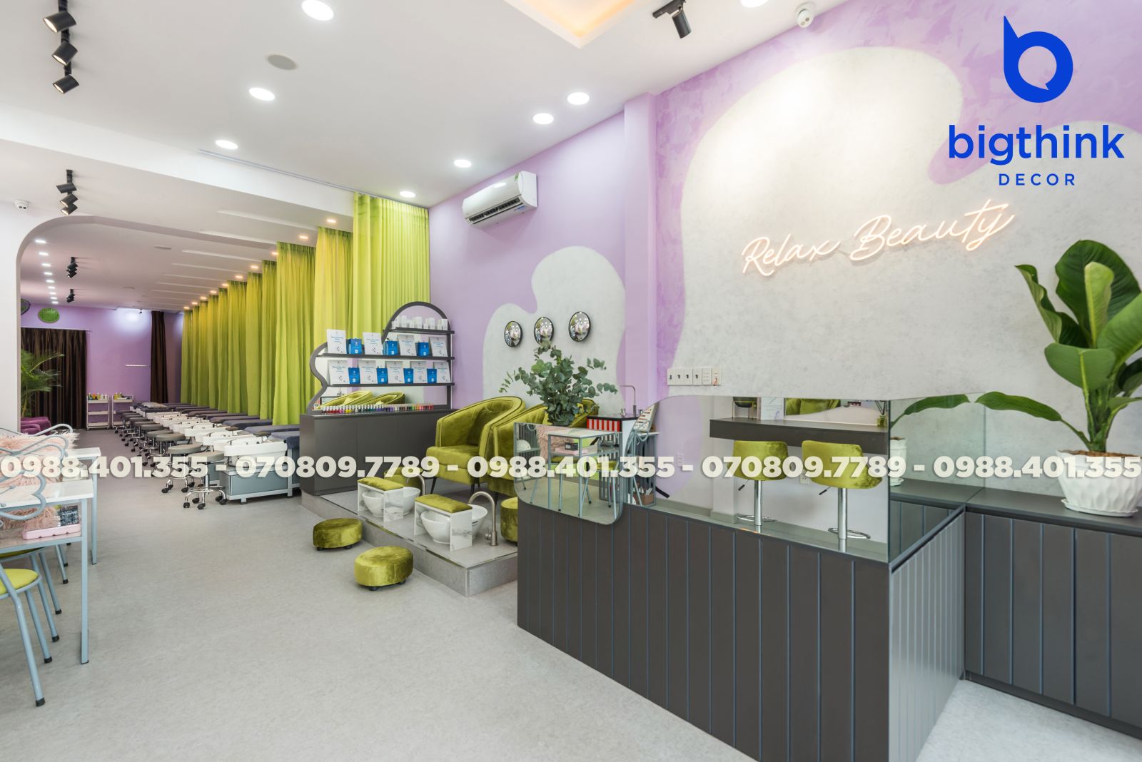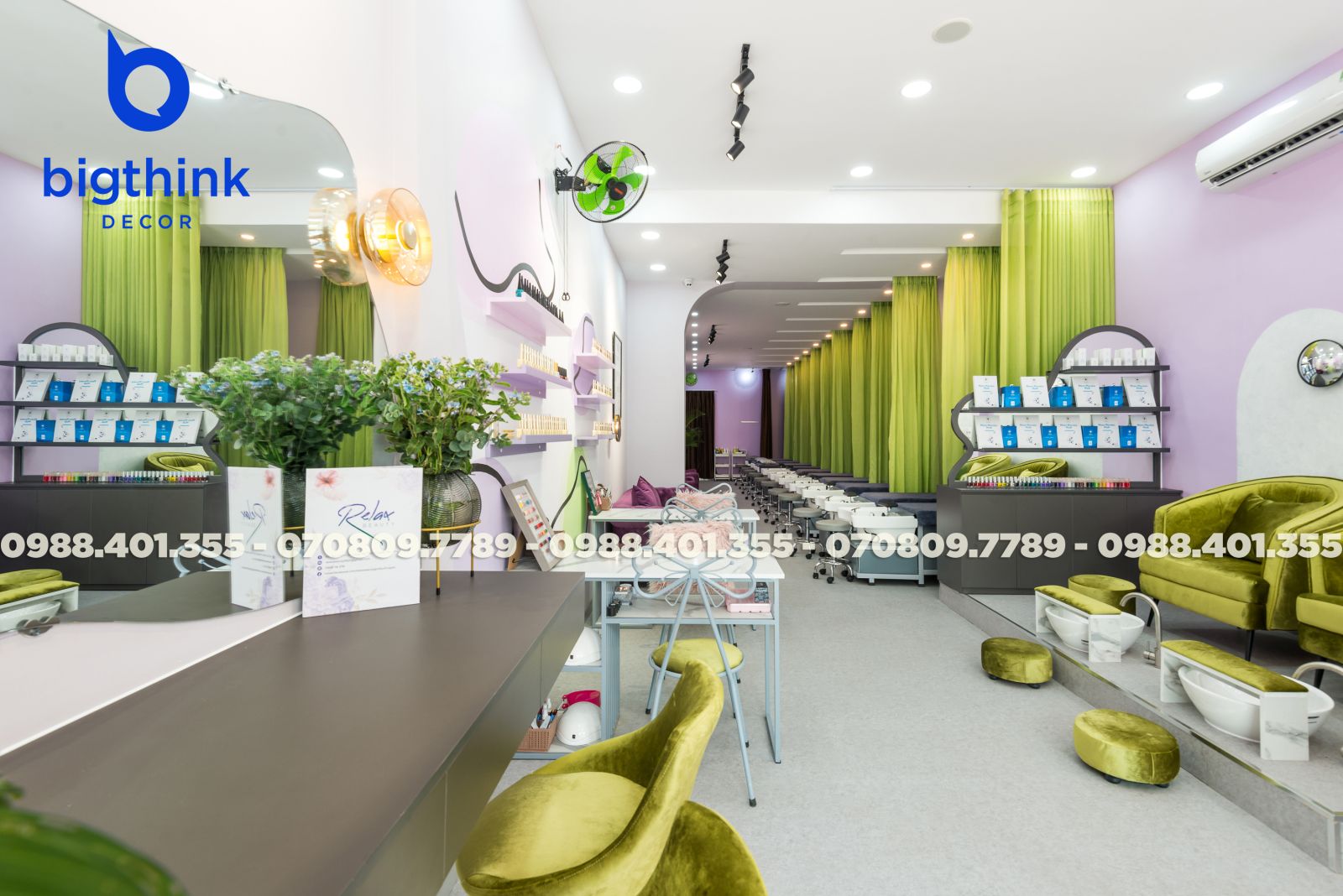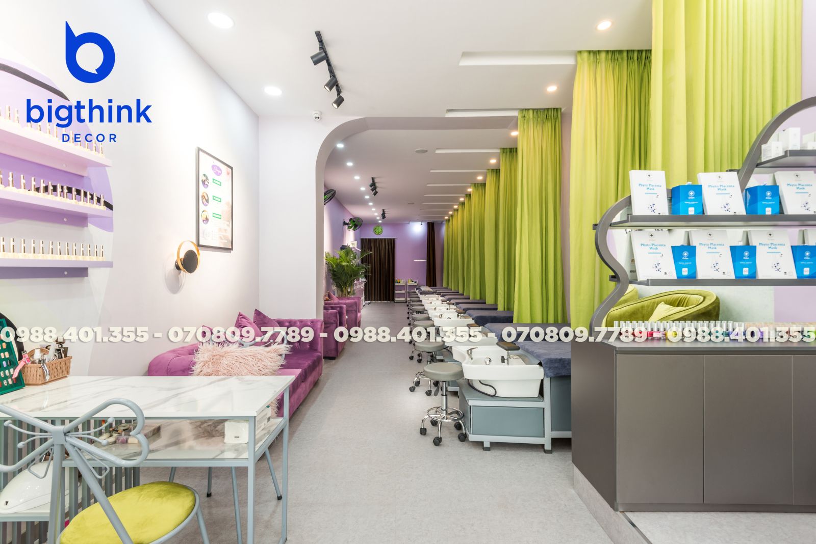 Đội ngũ chúng tôi mang tới một diện mạo tiệm Nail & Spa hoàn mỹ, nơi sự tiện nghi và thẩm mỹ hòa quyện. Bigthink Decor hiện thực hóa trọn vẹn từ bản vẽ đến thực tế, tối ưu từng vị trí ghế làm nail và giường gội đầu để đảm bảo trải nghiệm khách hàng tốt nhất, giúp chủ đầu tư tự tin vận hành và nâng tầm thương hiệu ngay từ ngày đầu.