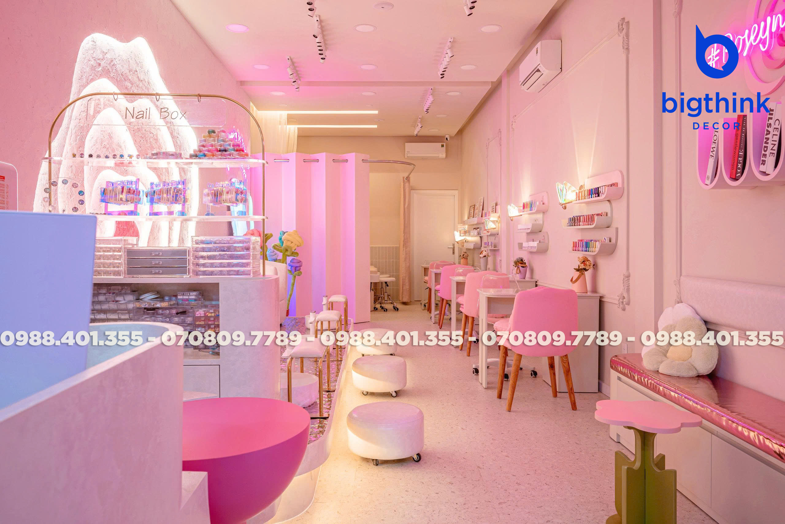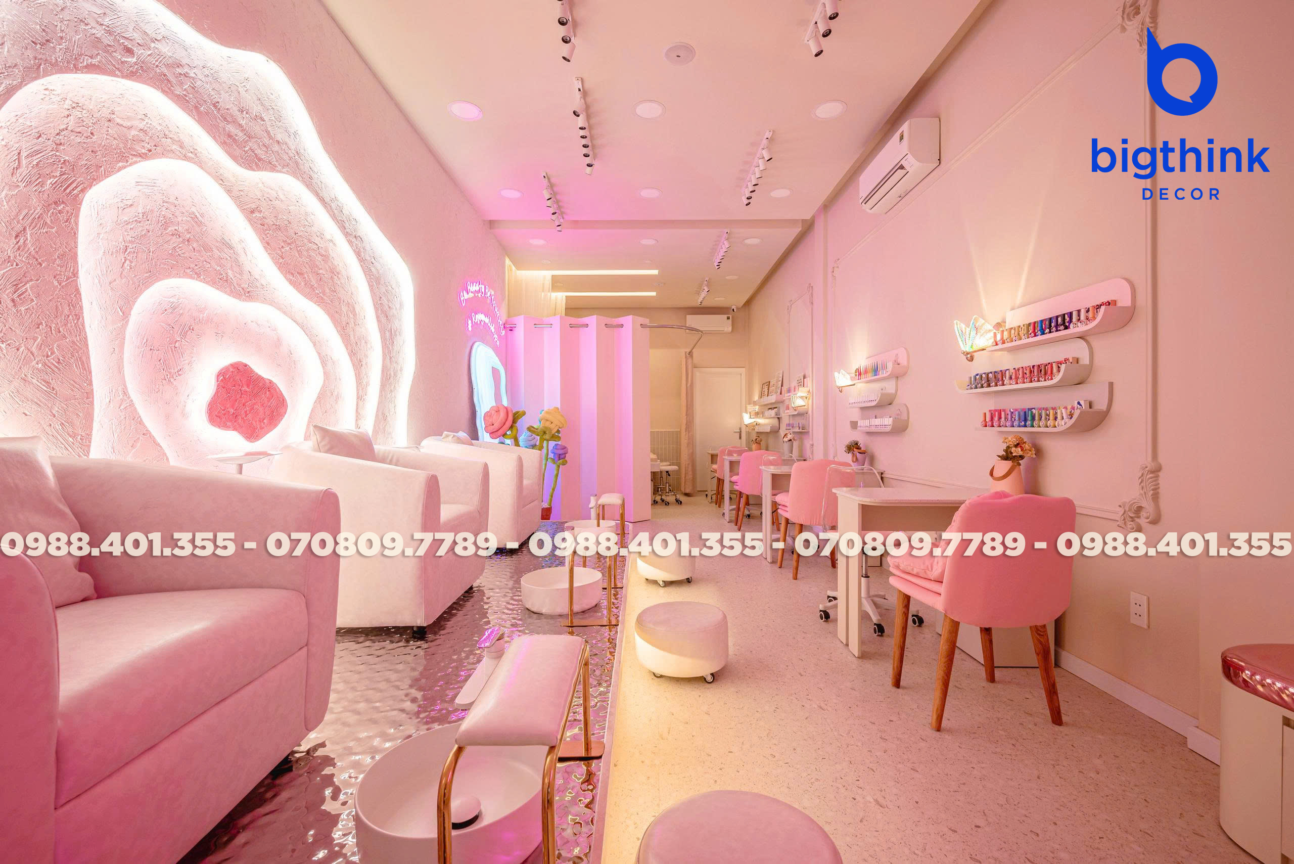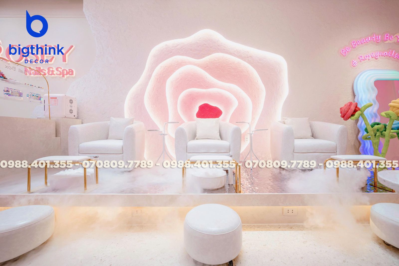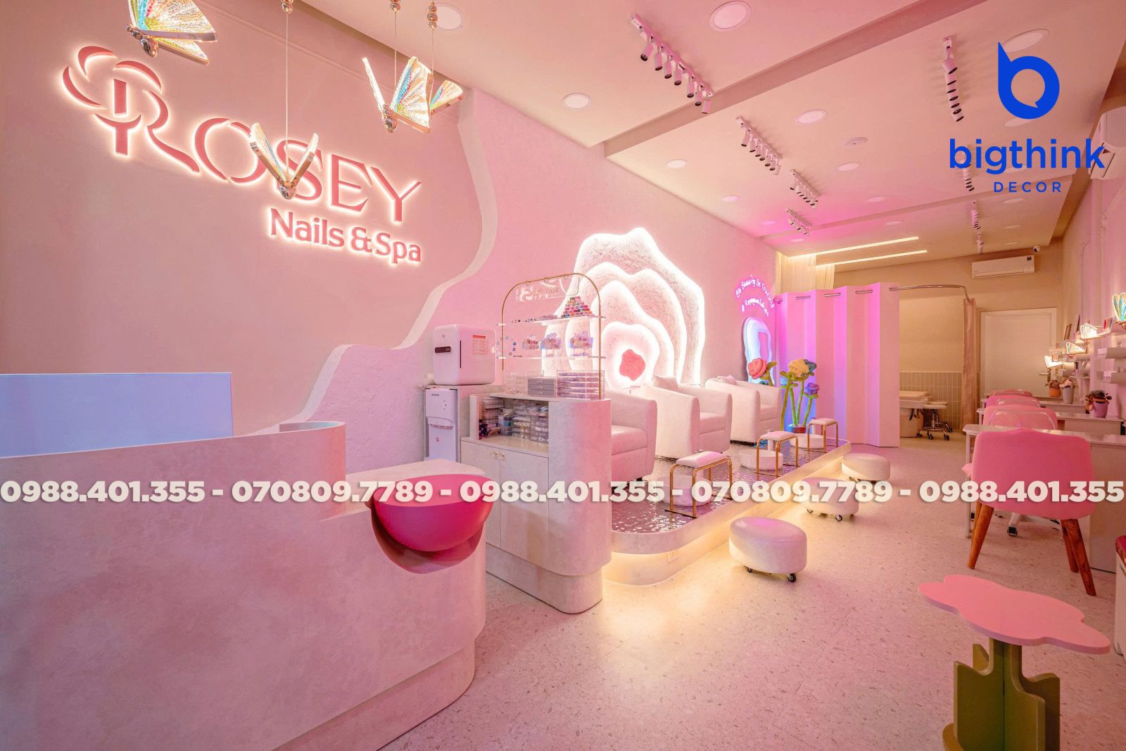 Rosey Nail & Spa được thiết kế theo hướng nhẹ nhàng và hiện đại, tạo cảm giác thoải mái ngay khi khách bước vào. Không gian được chia tách mạch lạc, từng khu vực đều có vai trò rõ ràng: khu làm móng, ghế chờ, quầy lễ tân cho đến góc thư giãn đều được sắp xếp khoa học để đảm bảo sự tiện lợi trong vận hành.