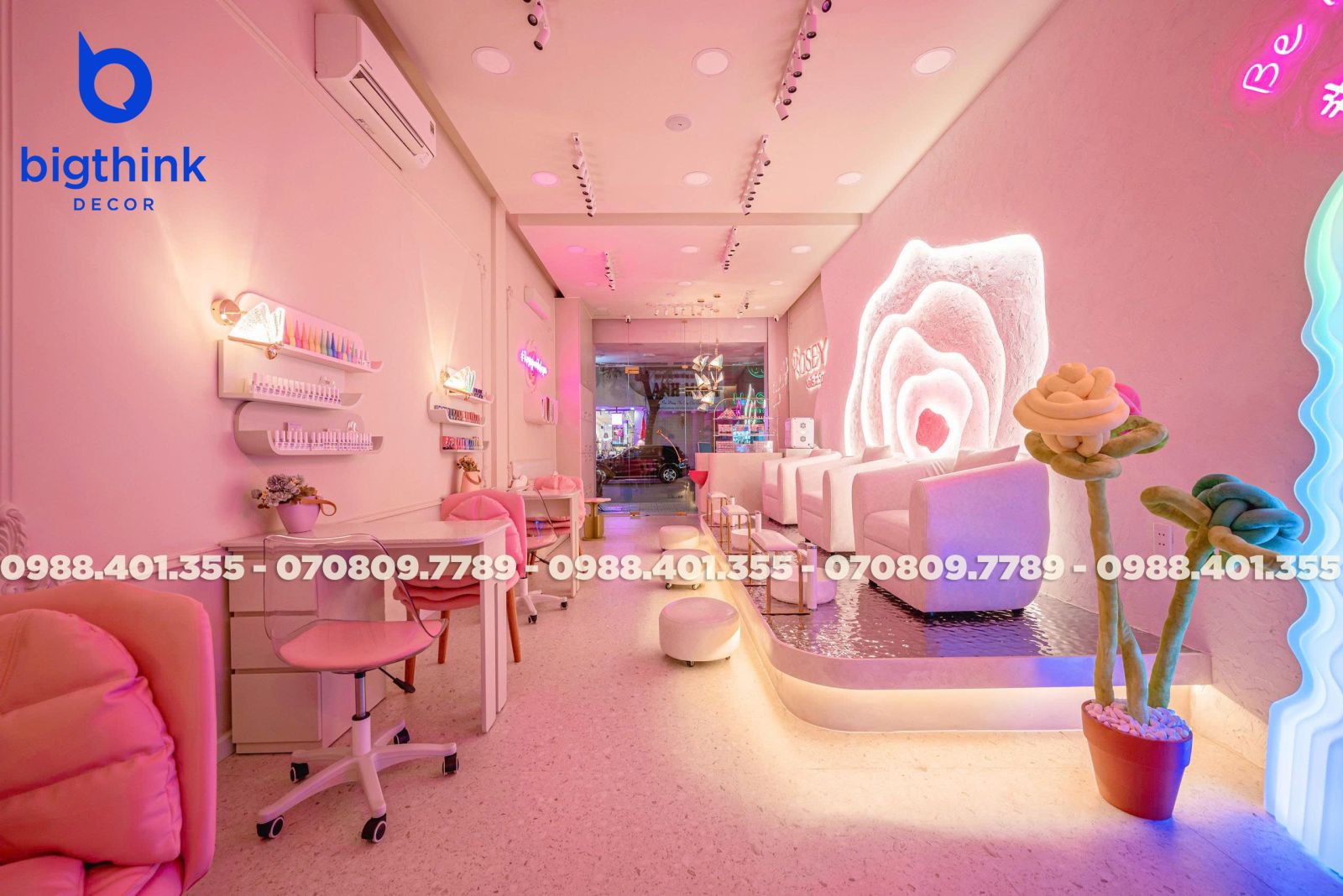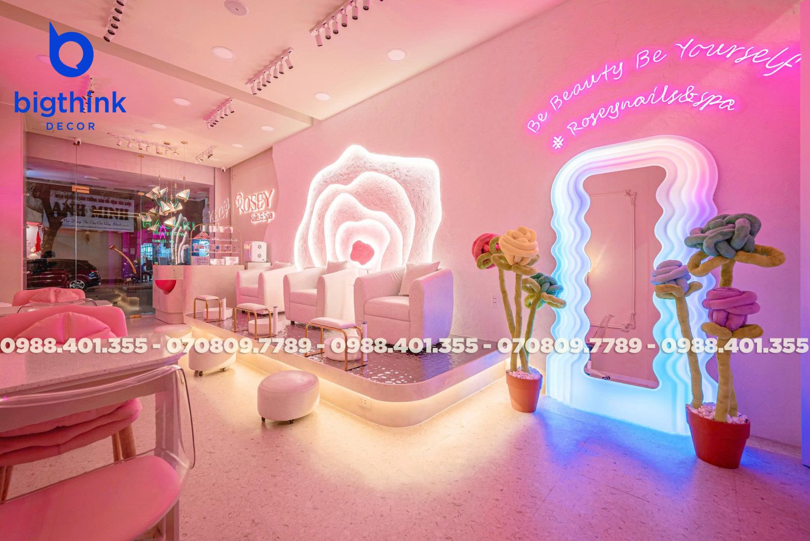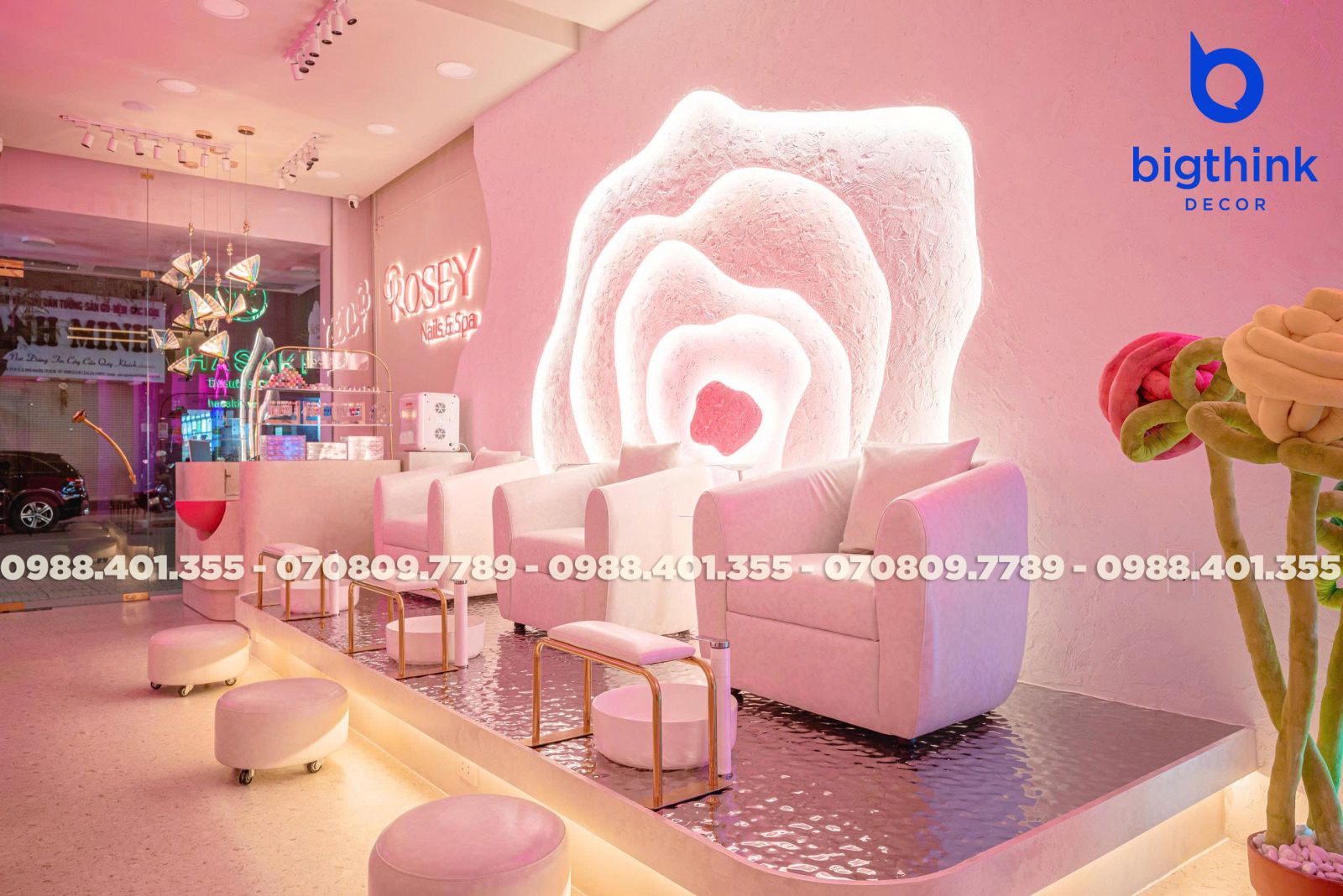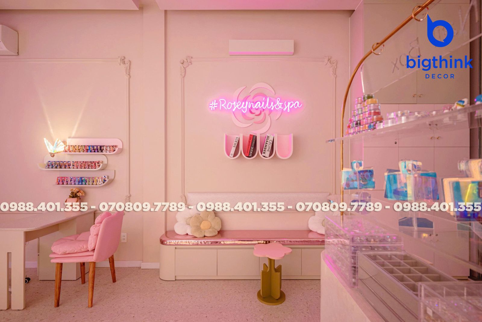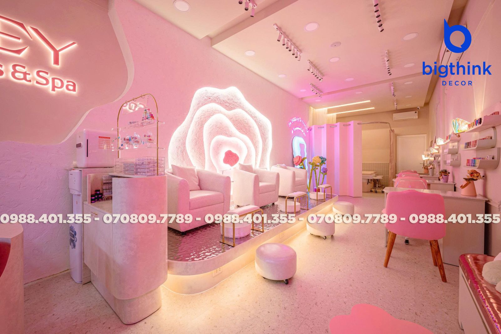 Rosey Nail & Spa được thiết kế theo hướng nhẹ nhàng và hiện đại, tạo cảm giác thoải mái ngay khi khách bước vào. Không gian được chia tách mạch lạc, từng khu vực đều có vai trò rõ ràng: khu làm móng, ghế chờ, quầy lễ tân cho đến góc thư giãn đều được sắp xếp khoa học để đảm bảo sự tiện lợi trong vận hành.