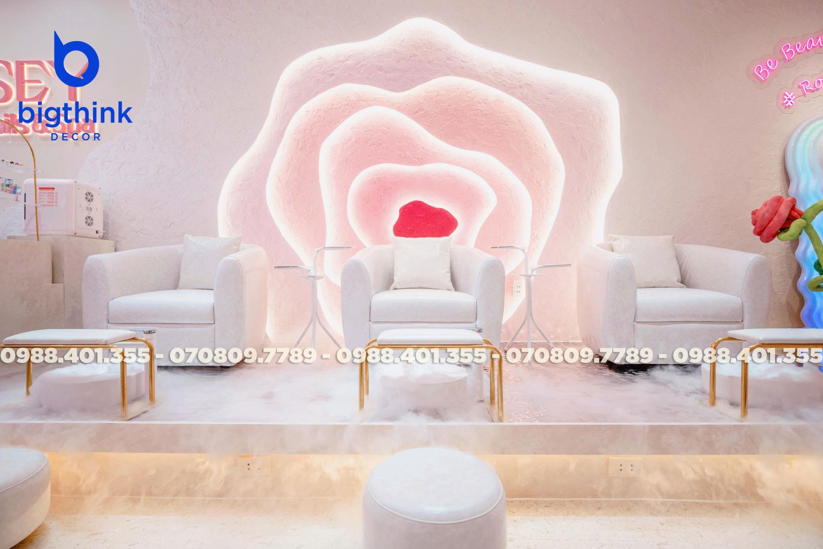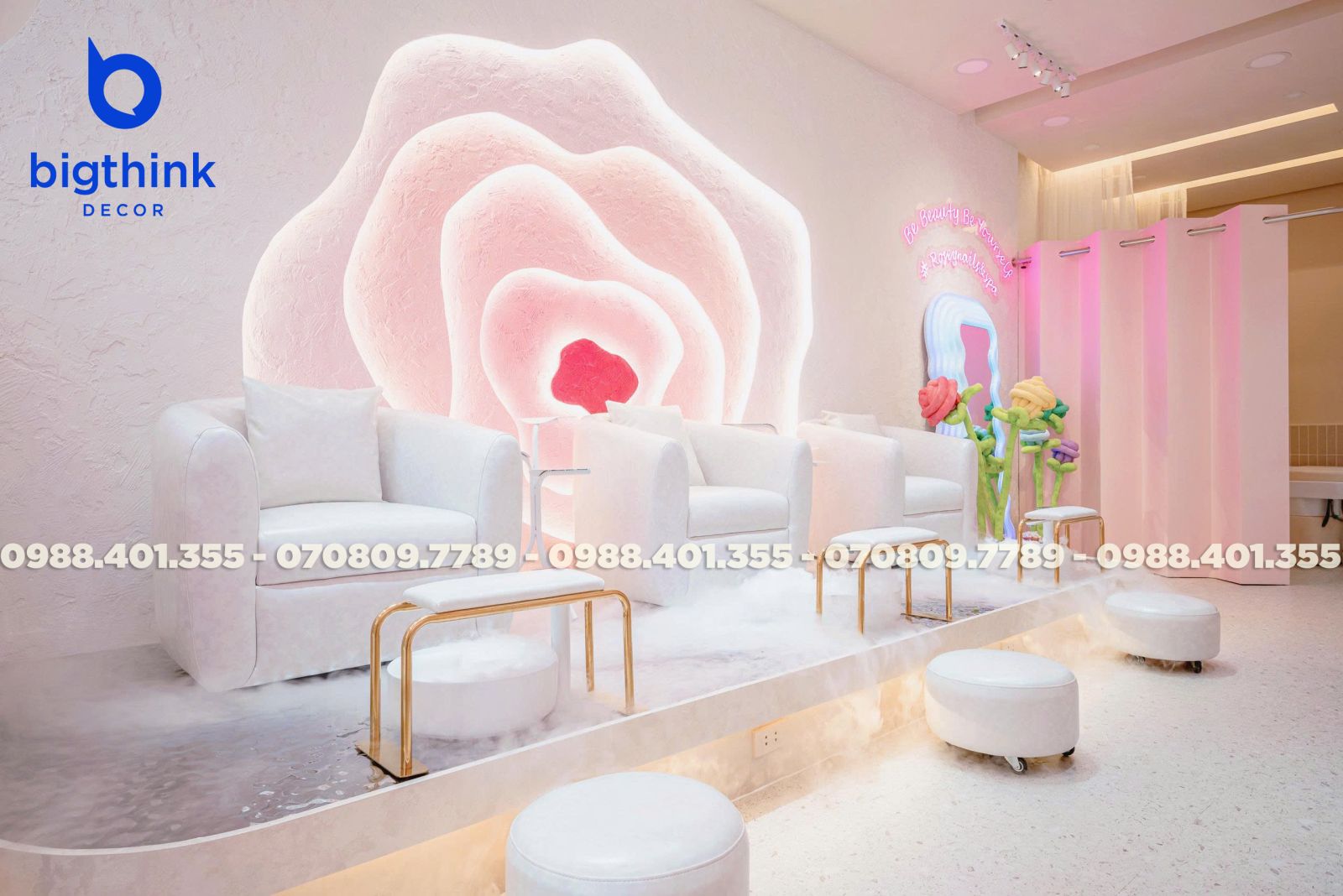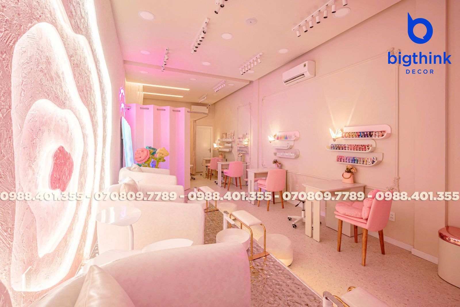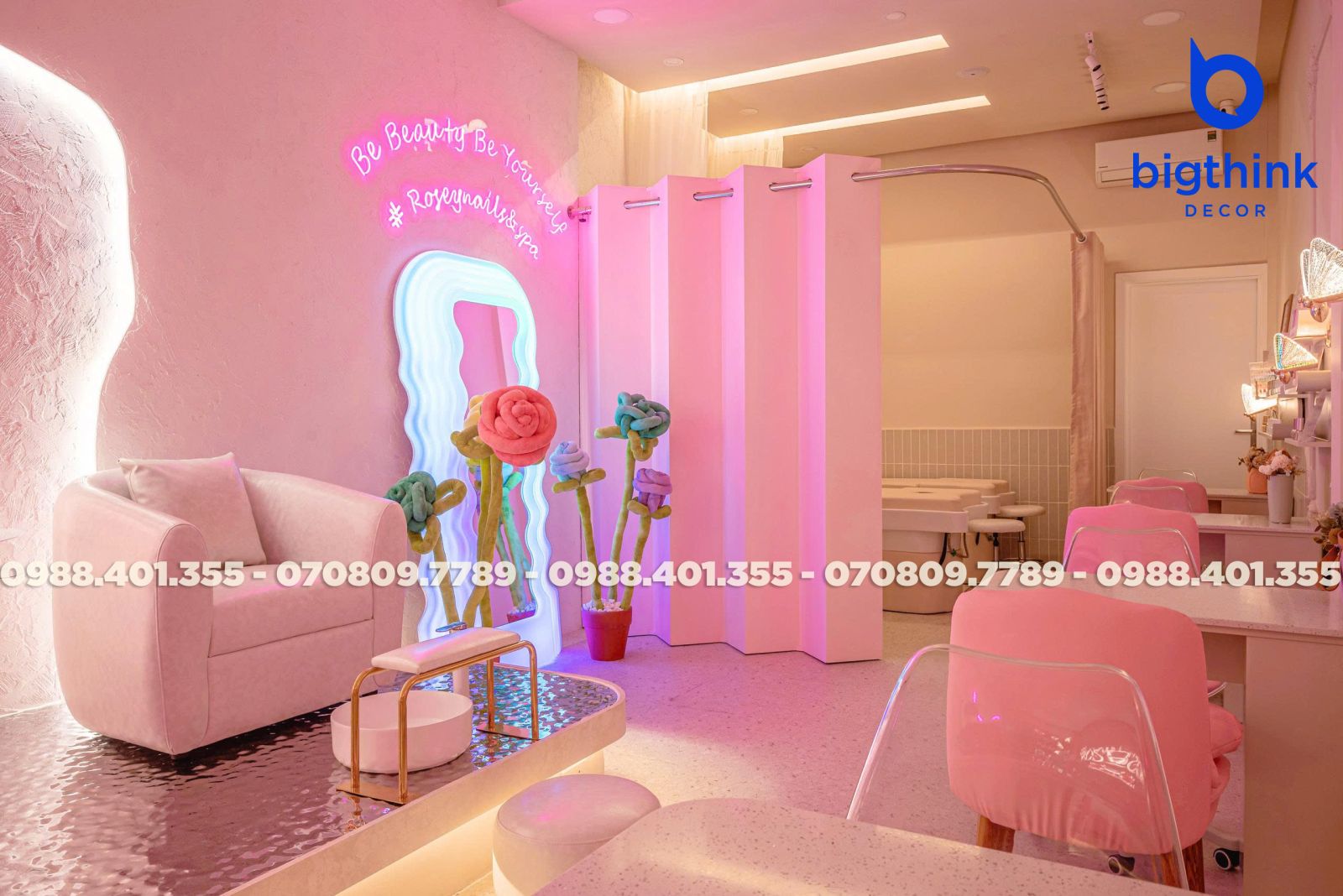 Rosey Nail & Spa được thiết kế theo hướng nhẹ nhàng và hiện đại, tạo cảm giác thoải mái ngay khi khách bước vào. Không gian được chia tách mạch lạc, từng khu vực đều có vai trò rõ ràng: khu làm móng, ghế chờ, quầy lễ tân cho đến góc thư giãn đều được sắp xếp khoa học để đảm bảo sự tiện lợi trong vận hành.