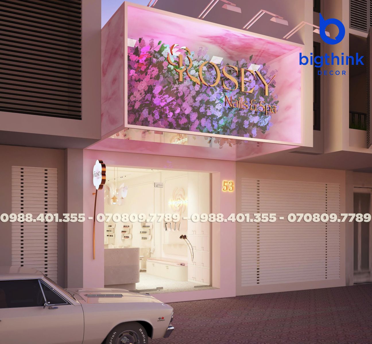 Rosey Nails & Spa với thiết kế có sự hòa quyện tinh tế giữa nét nữ tính hiện đại và ngọt ngào, mang đến cho khách hàng cảm giác như bước vào một khu vườn hoa hồng thu nhỏ giữa lòng thành phố. Khu vực làm nail, gội đầu và spa đều được bố trí gọn gàng, tối ưu, ánh sáng được tính toán kỹ lưỡng vừa đủ để tạo nên sự thư thái, vừa giúp tôn lên vẻ đẹp của làn da và móng tay khách hàng.