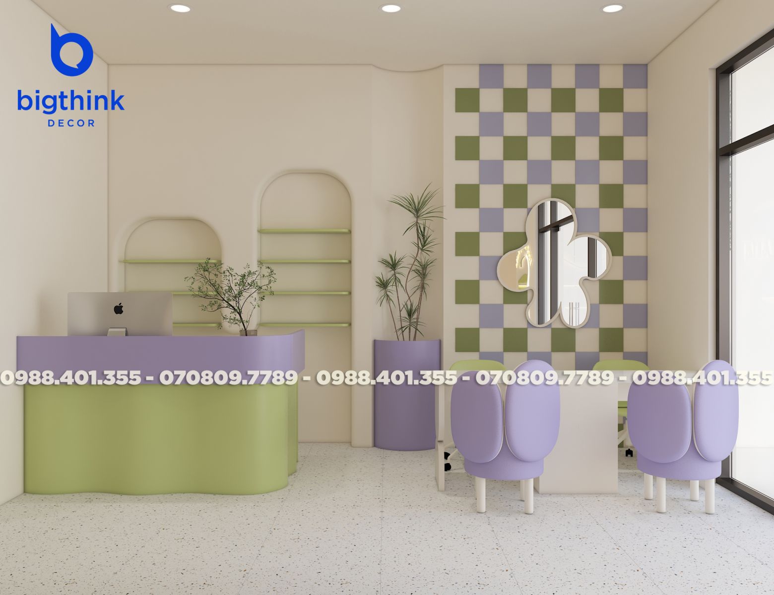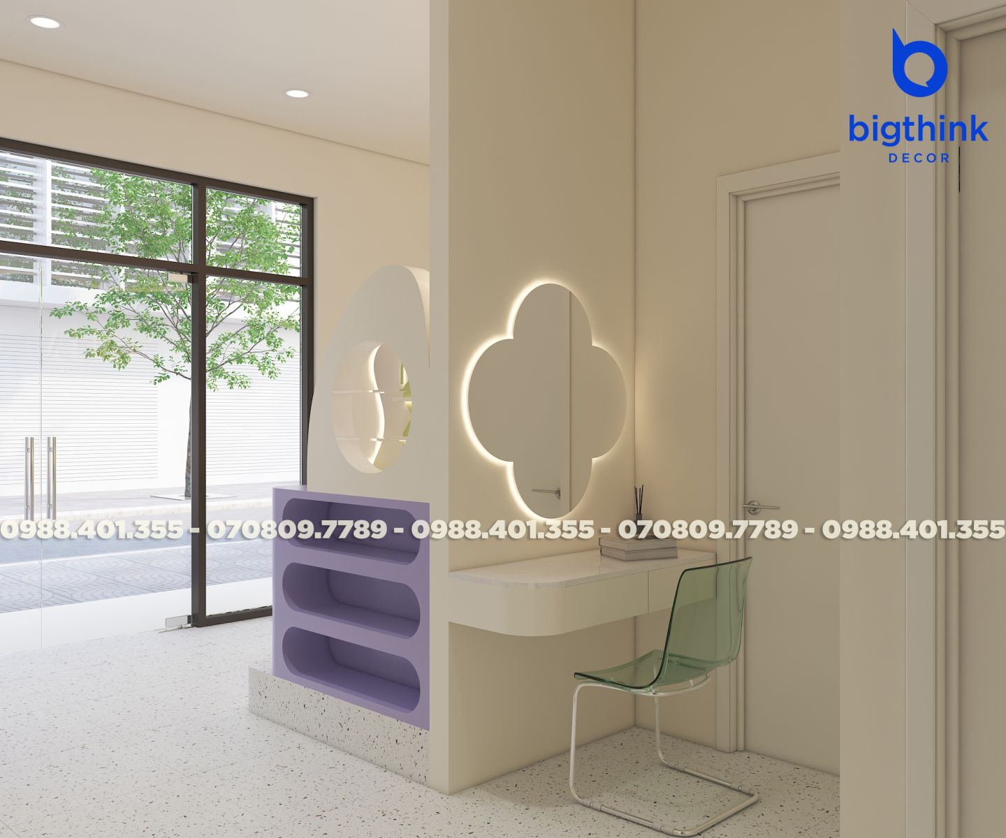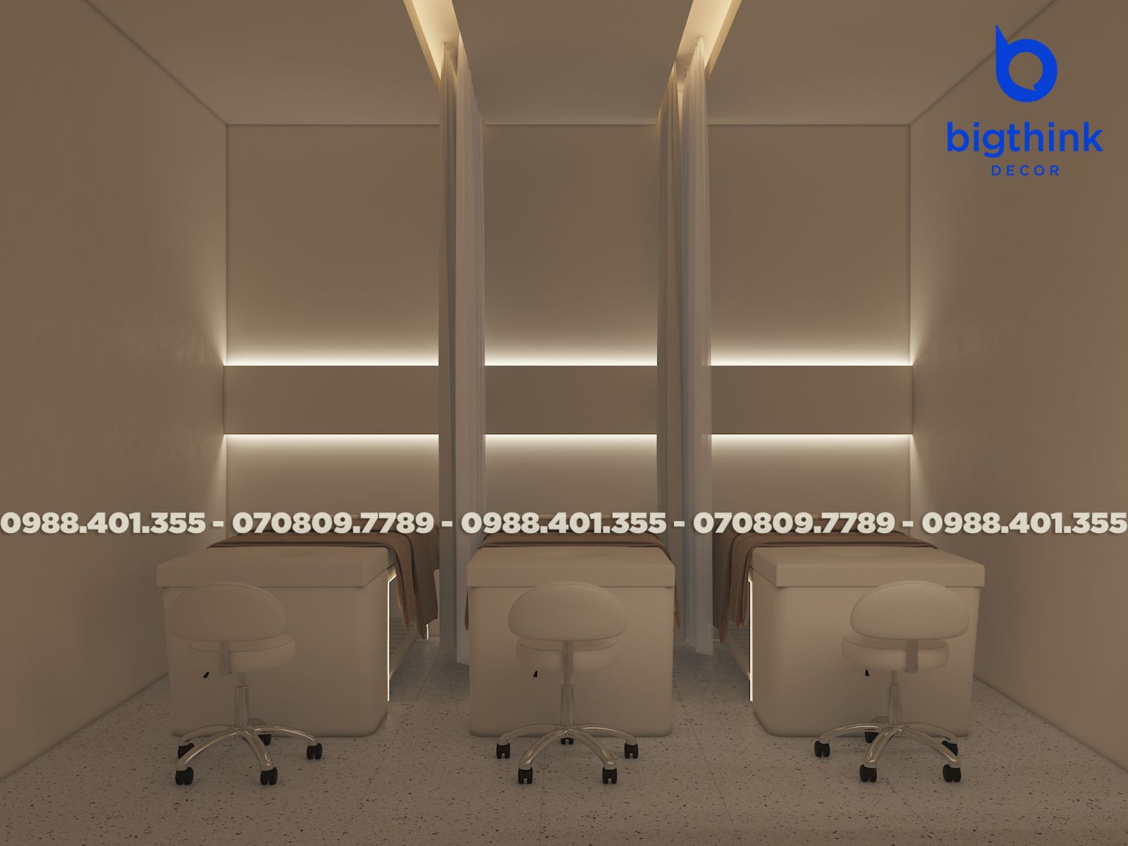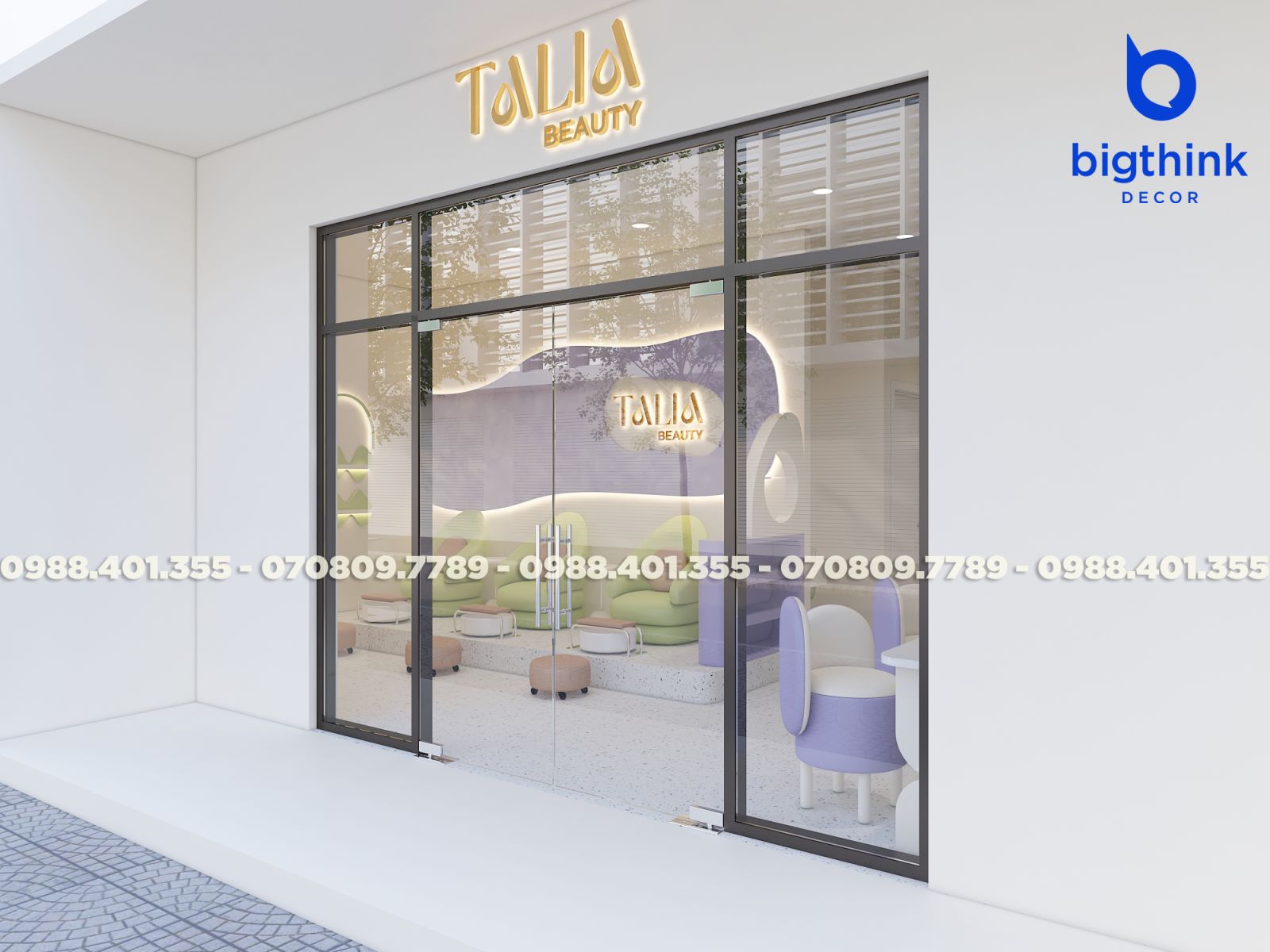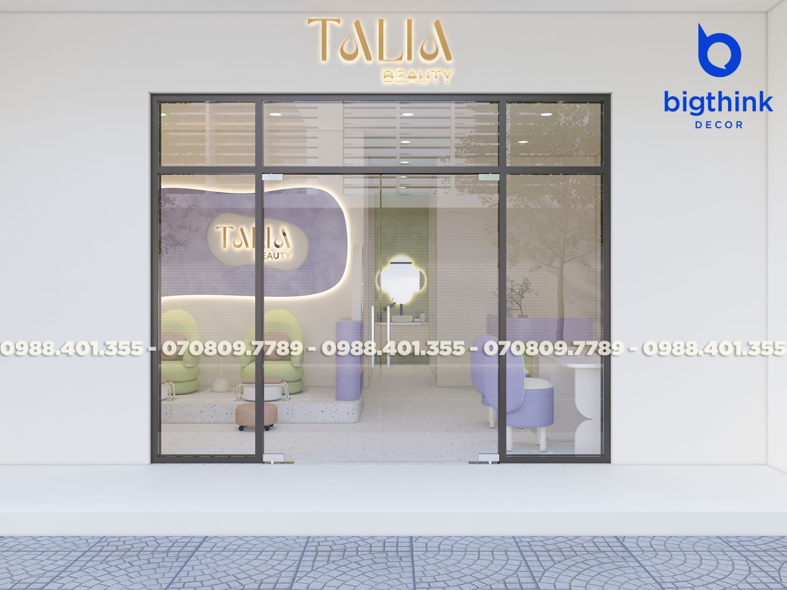 Talia Beauty được xây dựng với mục tiêu tạo ra một không gian nhẹ nhàng nhưng vẫn có điểm nhấn riêng. Các mảng cong, ánh sáng ấm và bảng màu pastel giúp tổng thể trở nên mềm mại, dễ chịu. Khu làm móng, khu lễ tân và khu ngồi chờ được phân chia rõ ràng nhưng vẫn liên kết, đảm bảo trải nghiệm liền mạch cho cả chủ tiệm lẫn khách hàng.
