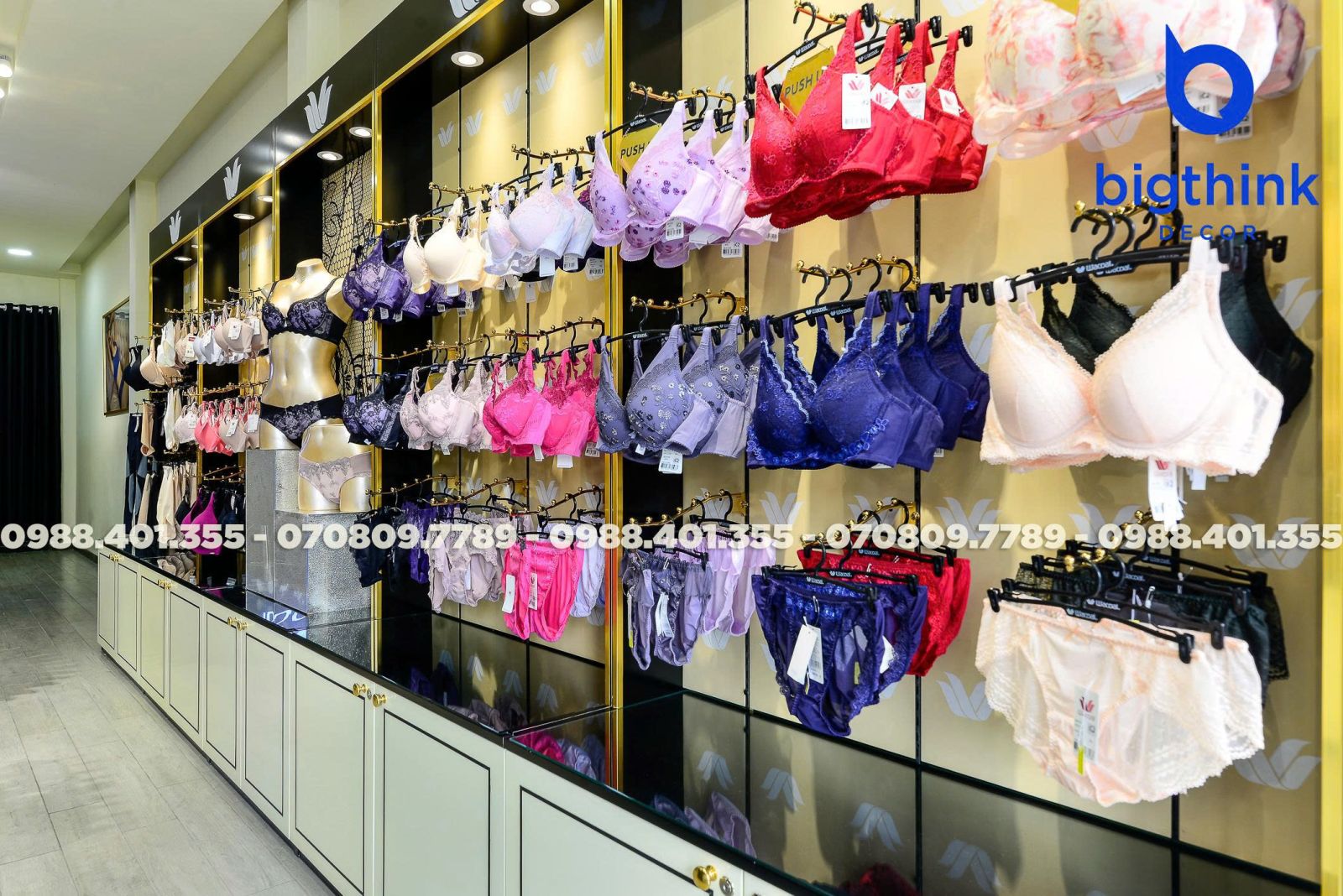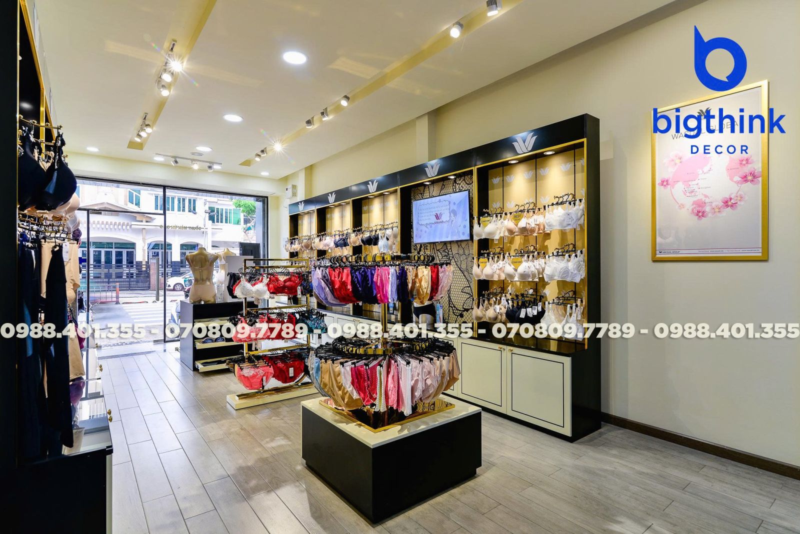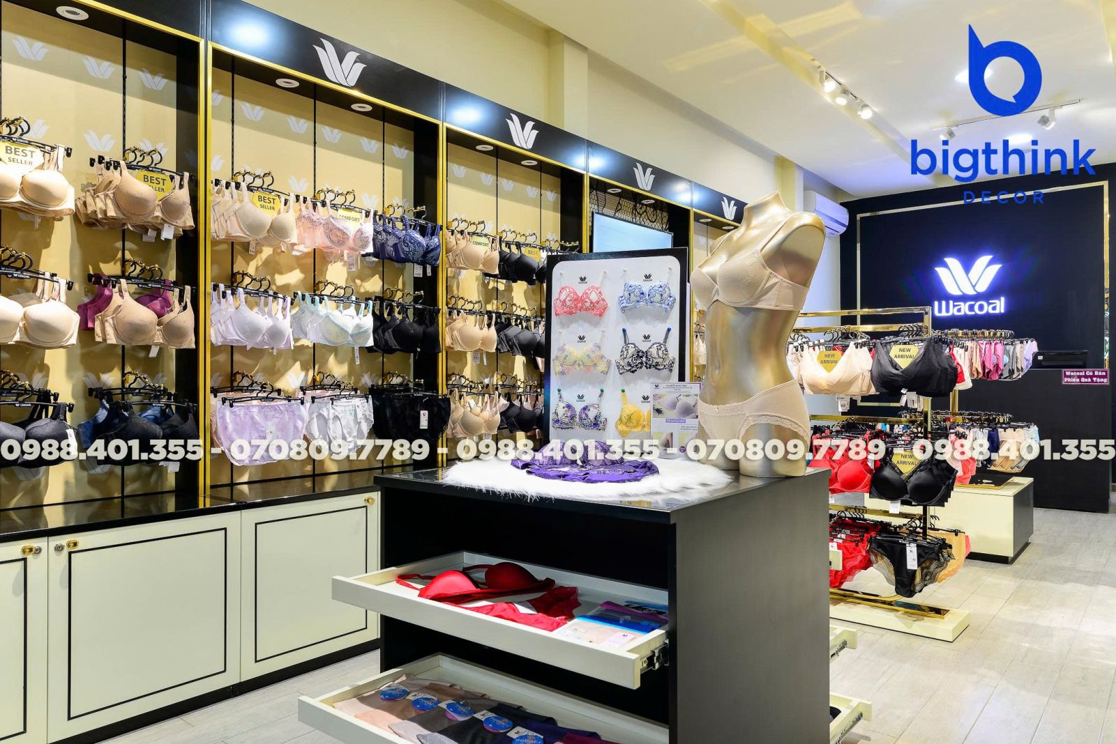 Cửa hàng Wacoal tại Quang Trung là minh chứng cho sự chỉn chu trong từng chi tiết nội thất từ Bigthink Decor. Không gian được thiết kế và hoàn thiện nhằm mang lại trải nghiệm mua sắm sang trọng, thoải mái nhất cho khách hàng.