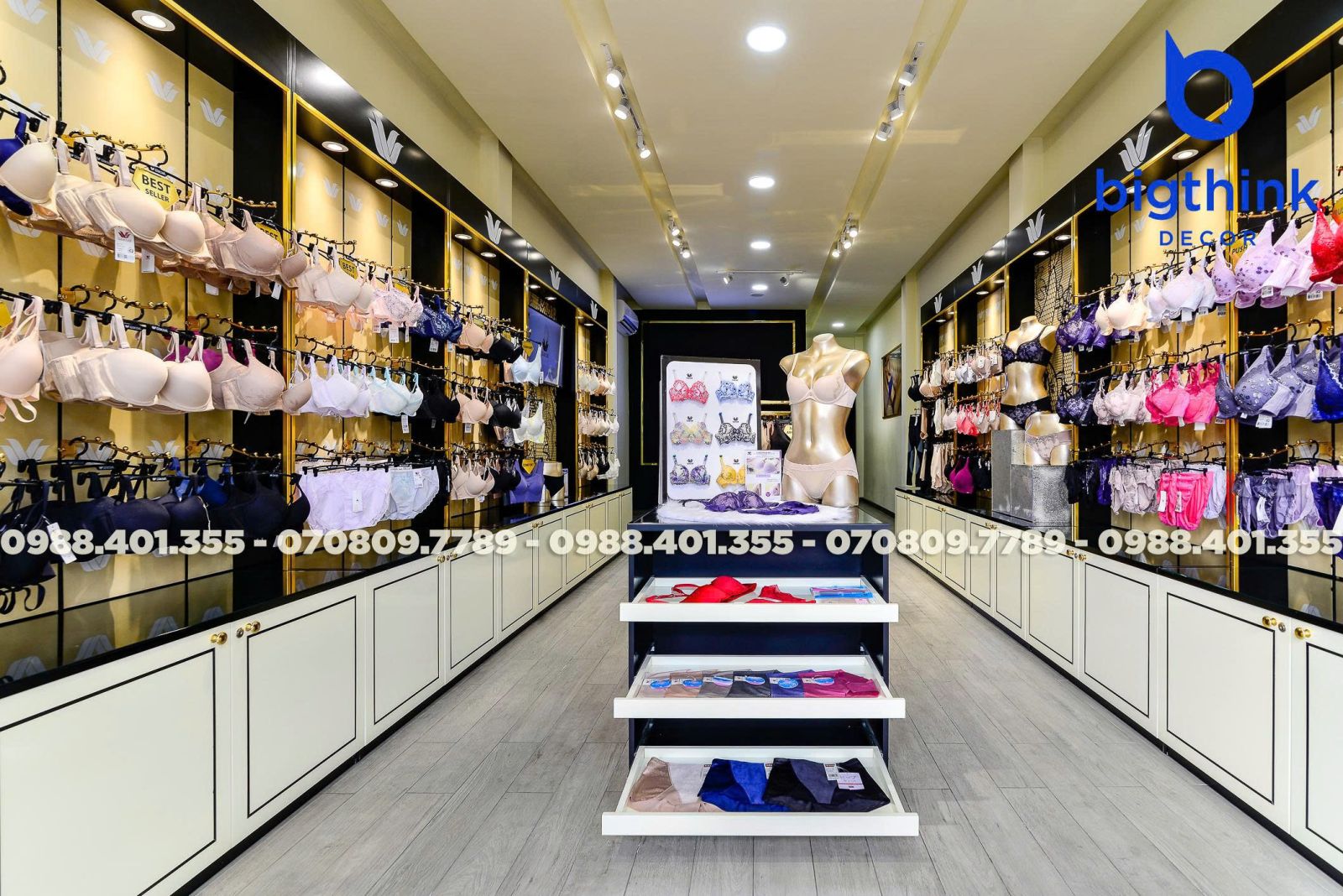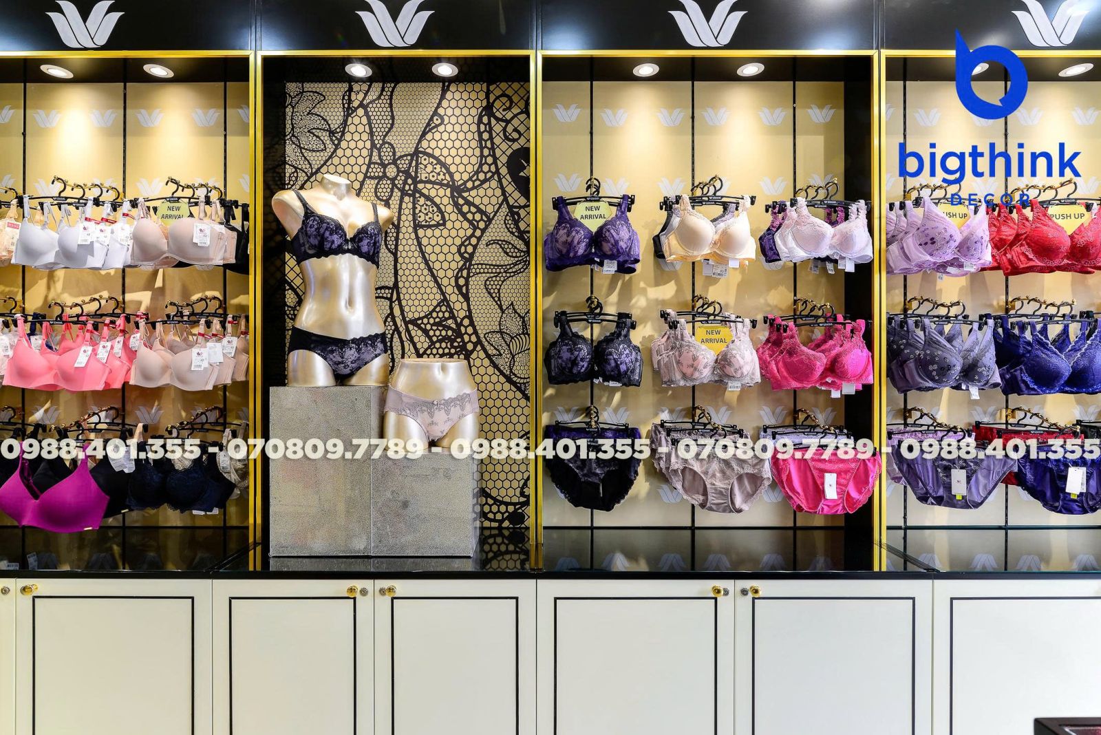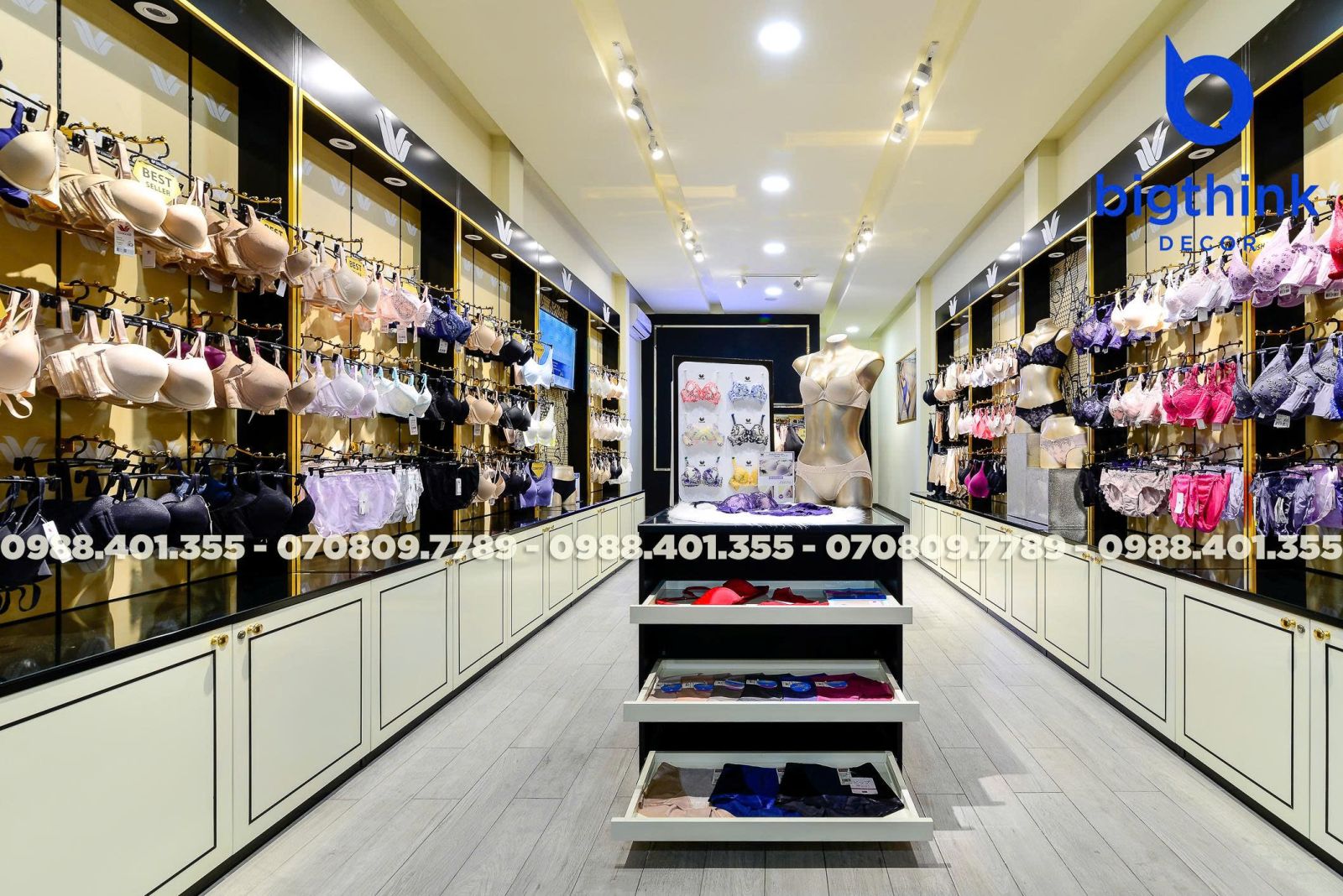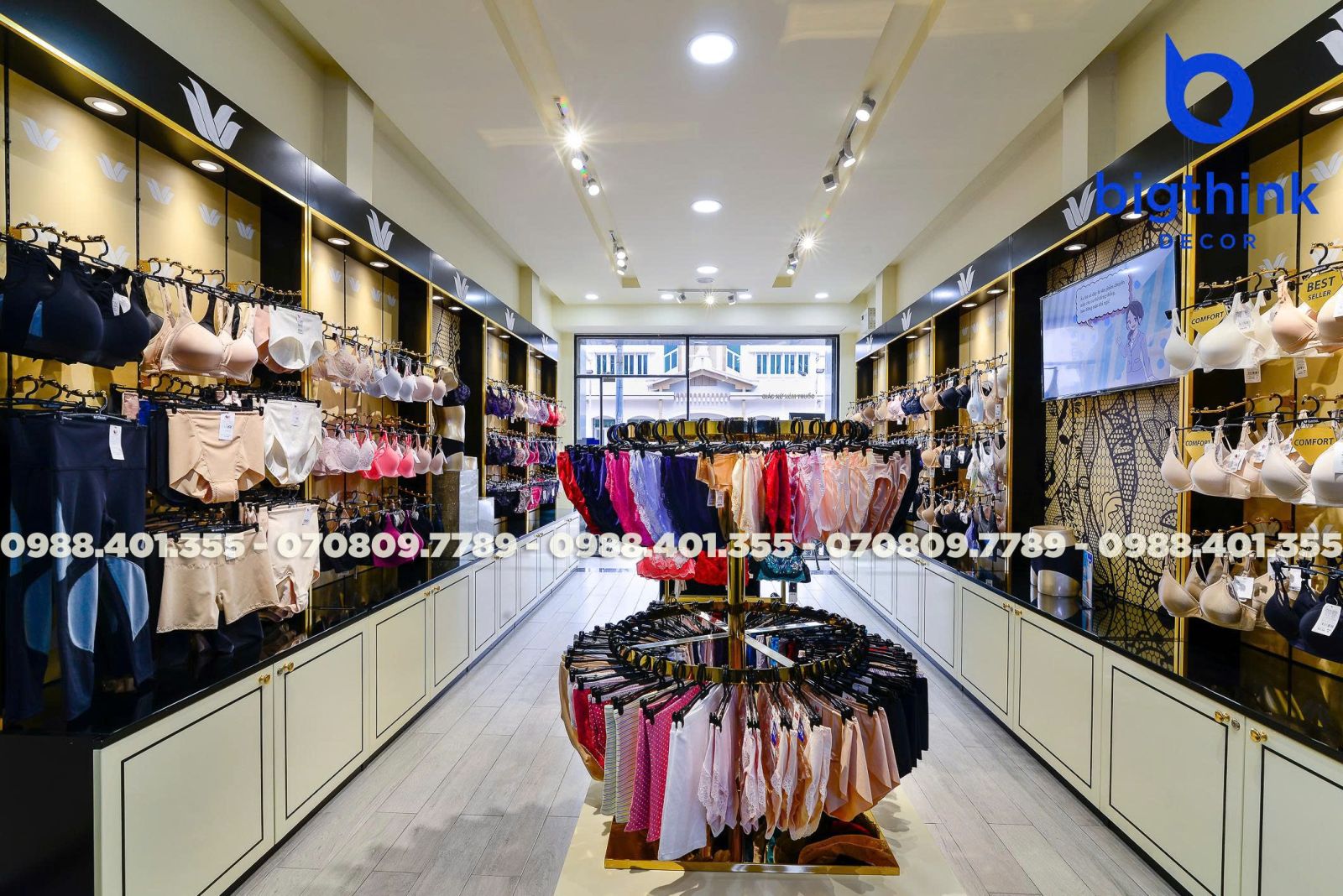 Cửa hàng Wacoal tại Quang Trung là minh chứng cho sự chỉn chu trong từng chi tiết nội thất từ Bigthink Decor. Không gian được thiết kế và hoàn thiện nhằm mang lại trải nghiệm mua sắm sang trọng, thoải mái nhất cho khách hàng.