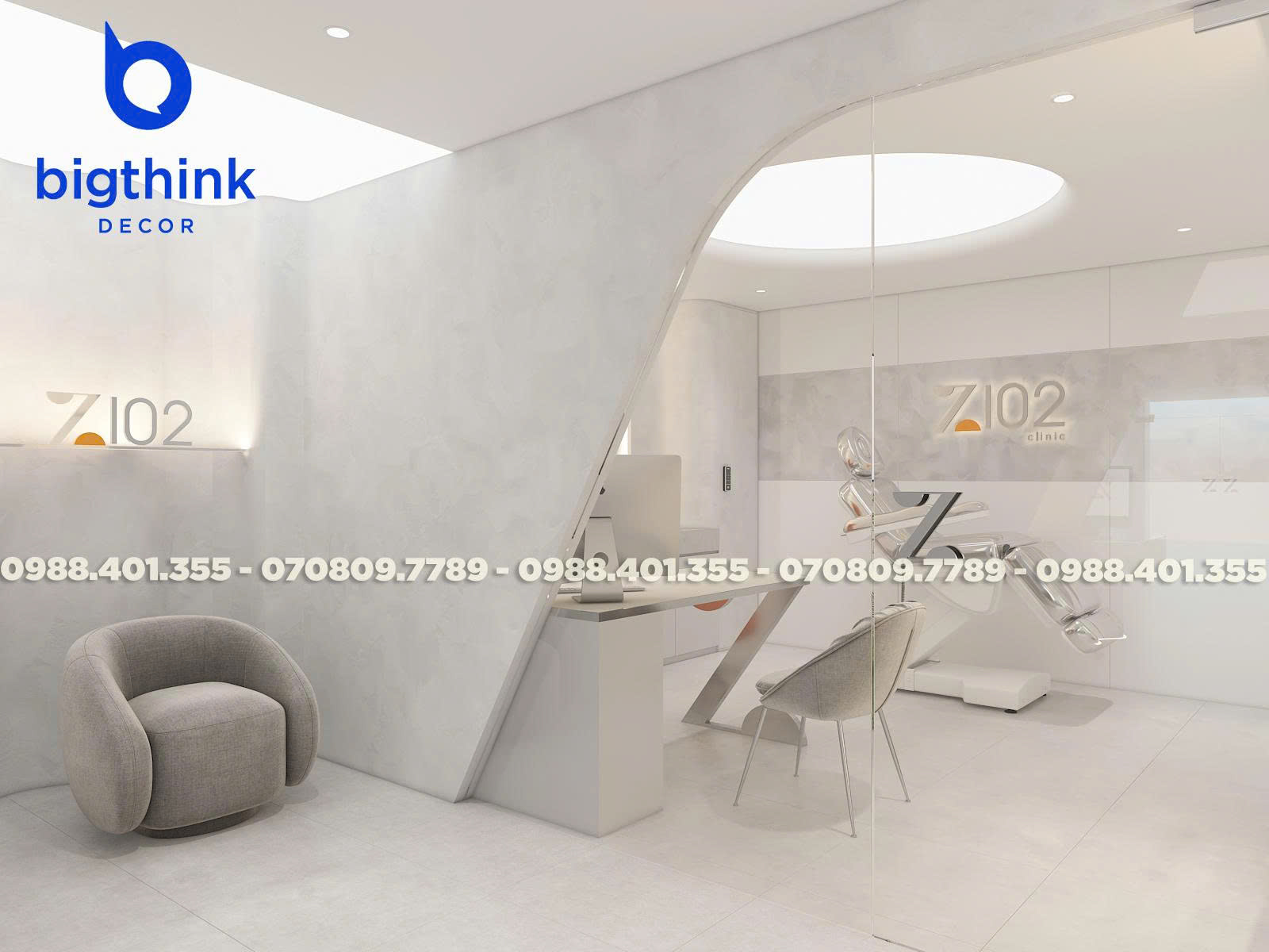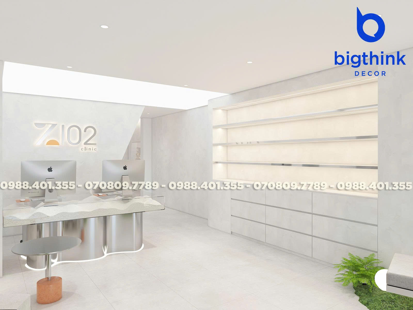 Z102 đã được sử dụng tông màu trung tính kết hợp cùng hệ thống ánh sáng thông minh để tôn vinh sự chuyên nghiệp của phòng khám. Mọi chi tiết từ sảnh đón khách đến phòng trị liệu đều được thi công tỉ mỉ, tối ưu công năng vận hành y tế và cam kết bàn giao thực tế chuẩn xác so với thiết kế, không phát sinh chi phí.